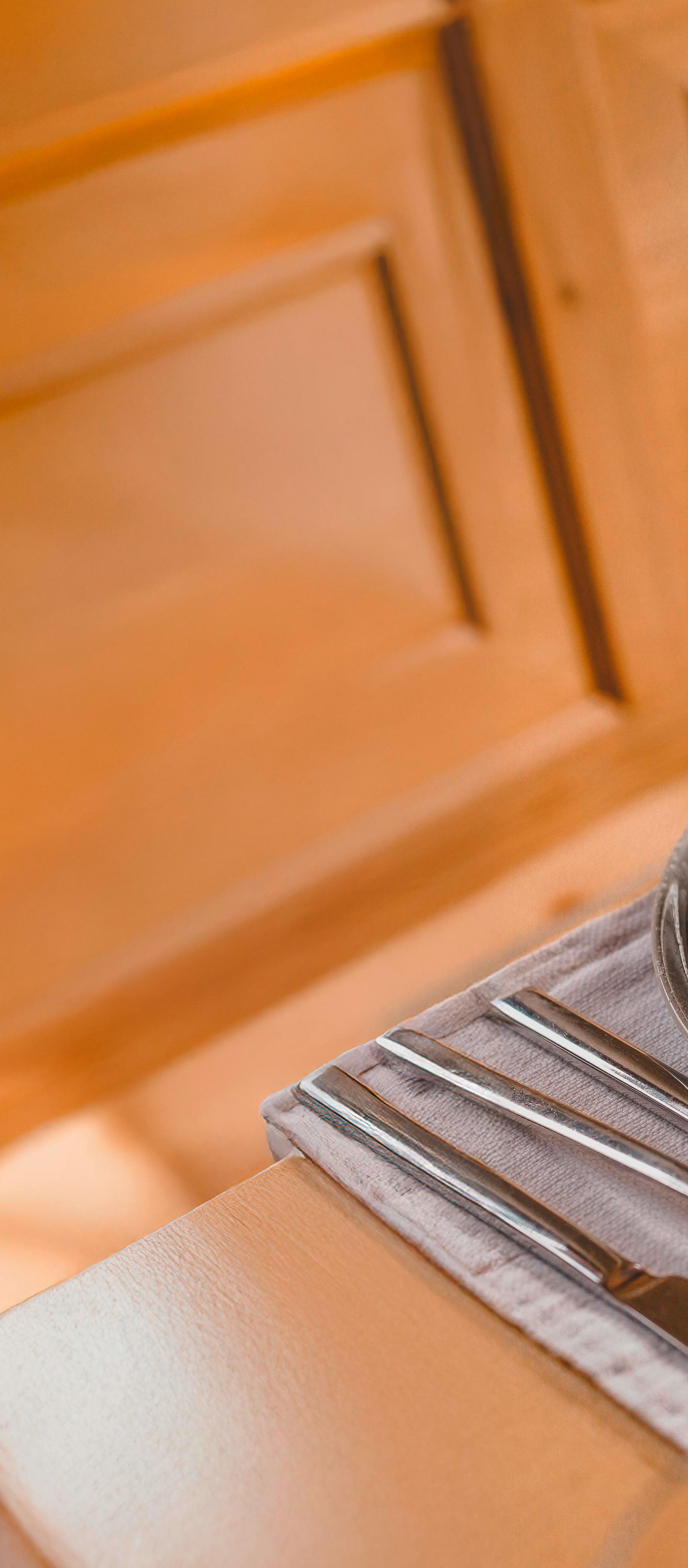 This is where tradition melds and combines with innovation. Through honest, authentic cuisine derived from regional ingredients and interpreted in creative new ways. All the dishes are prepared with an enormous amount of love and devotion from fresh products, much of which comes directly from local suppliers. The kitchen’s offerings are simple yet refined. They are developed out of classic recipes but given a modern twist. Everything is prepared and produced with the greatest possible individual care, whether it be homemade bread or delicate desserts. This is where you can also – apart from enjoying great food – feel a piece of homeland and all the good vibes that come up during a cosy evening meal with friends, a family celebration or a special occasion.