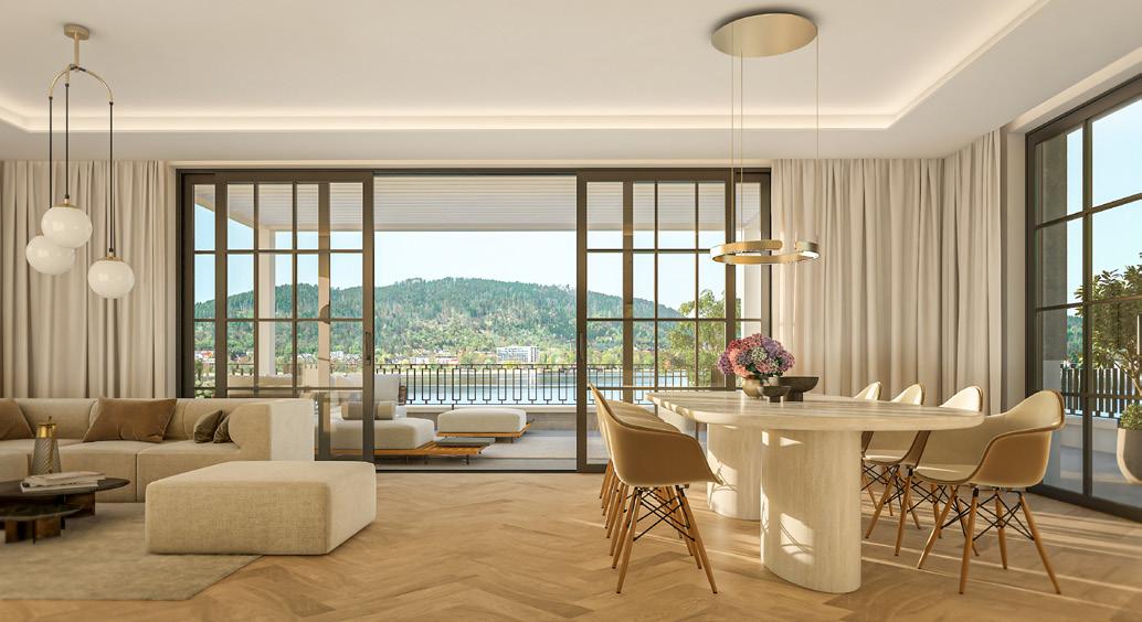 Genießen Sie mit Ihrer Familie die Privatsphäre in einer der drei Villen und blicken Sie von Ihrem Wohn-/Essraum und der Logenplatz-Terrasse zum Golfplatz sowie auf den türkis leuchtenden Wörthersee.
