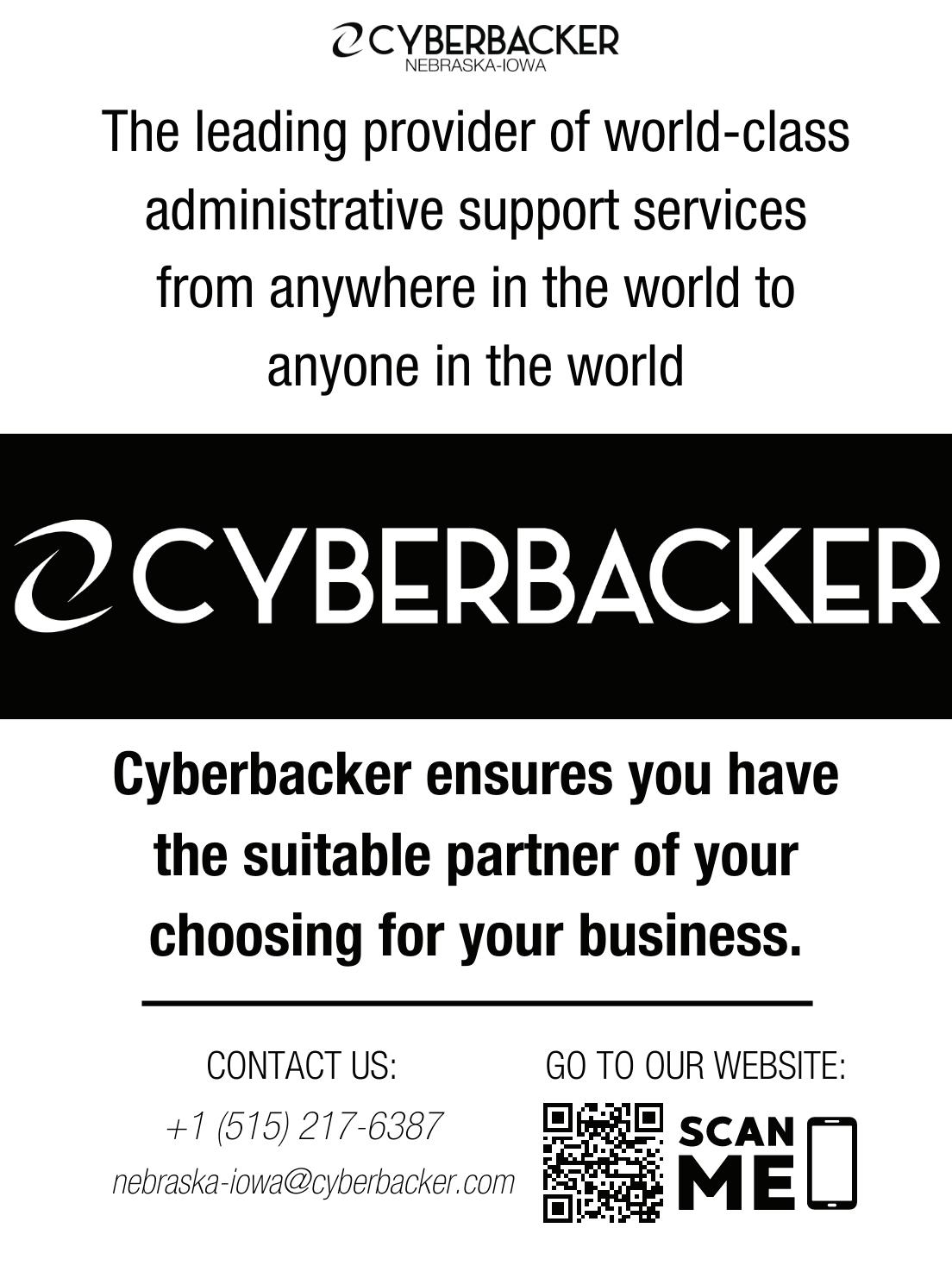 Cyberbacker Nebraska-Iowa is part of the global Cyberbacker franchise, the leading provider of world-class administrative support services from anywhere in the world to anyone in the world. They ensure you have the suitable partner of your choosing for your business. You can learn more by visiting their website at www.cyberbacker.com or contact them at nebraska-iowa@cyberbacker.com / (515) 217-6387.