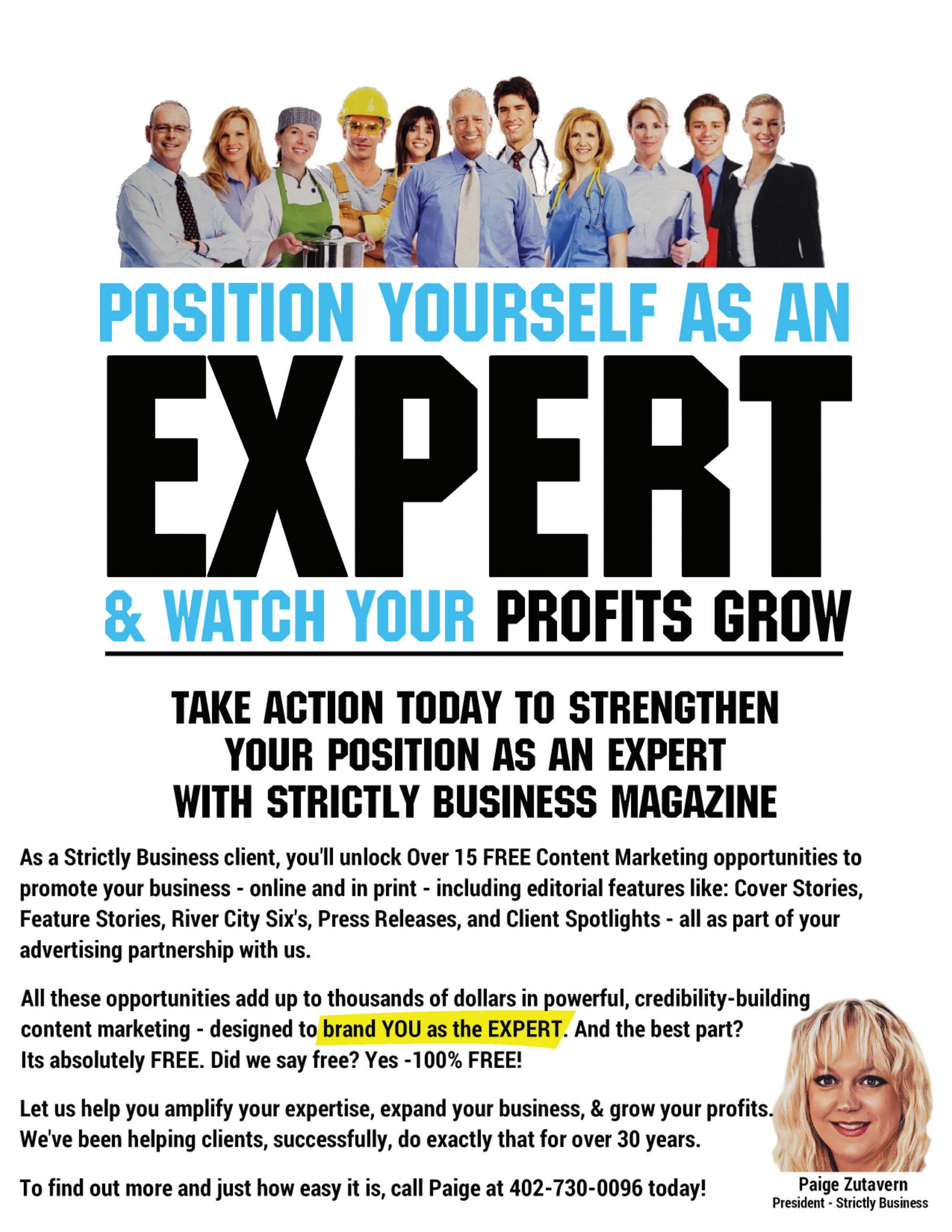 President/Sales Paige Zutavern – Paige@StrictlyBusinessOmaha.com