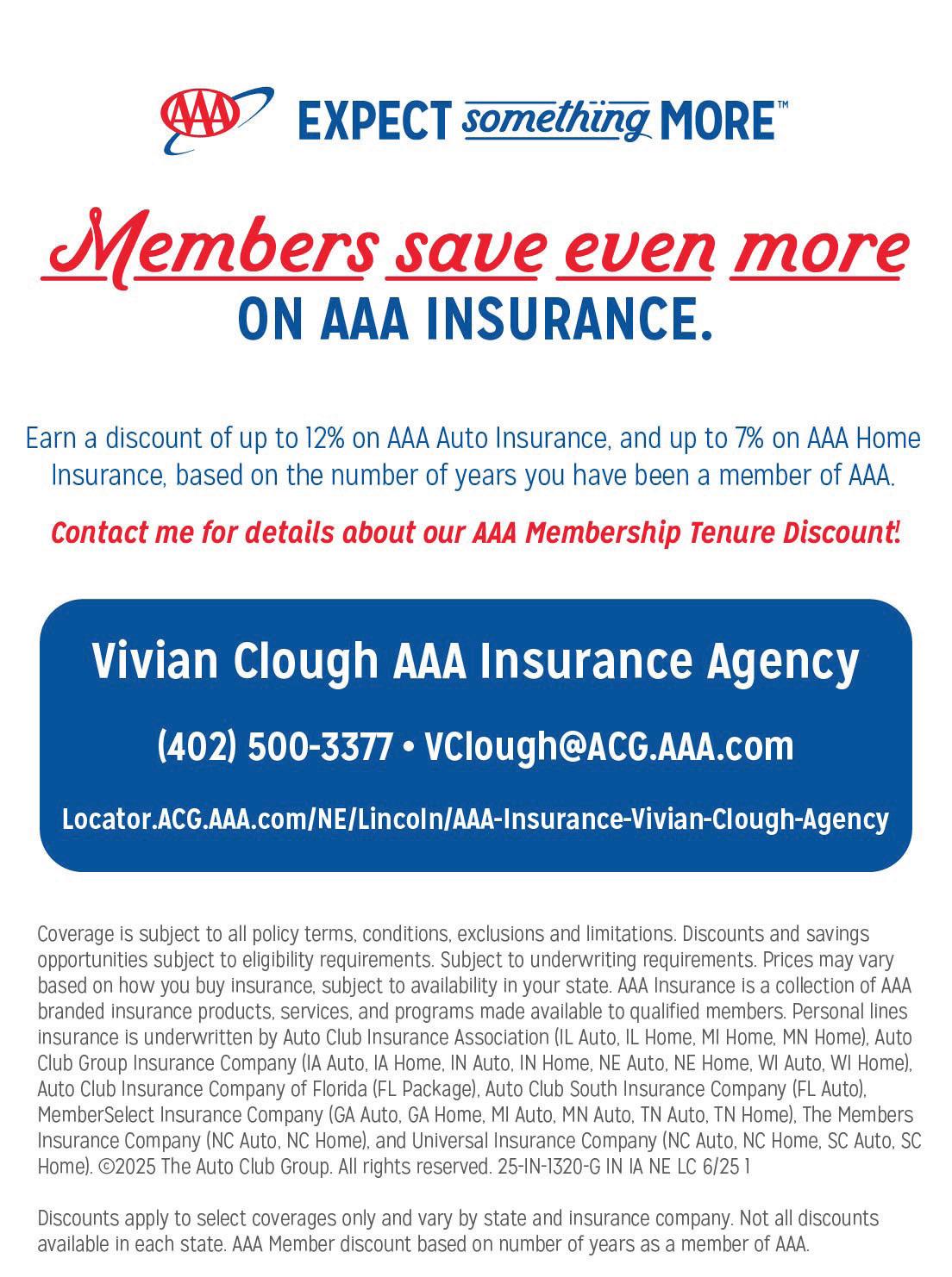 The rising cost of assisted living, home health services and skilled care has made protection conversations more urgent. Families are increasingly focused on protecting their homes, vehicles savings and legacy. At Vivian Clough AAA Insurance Agency – Nebraska’s 1st Entrepreneurial AAA Agency are seeing more interest in life insurance solutions and annuities that provide financial stability and flexibility as people age.