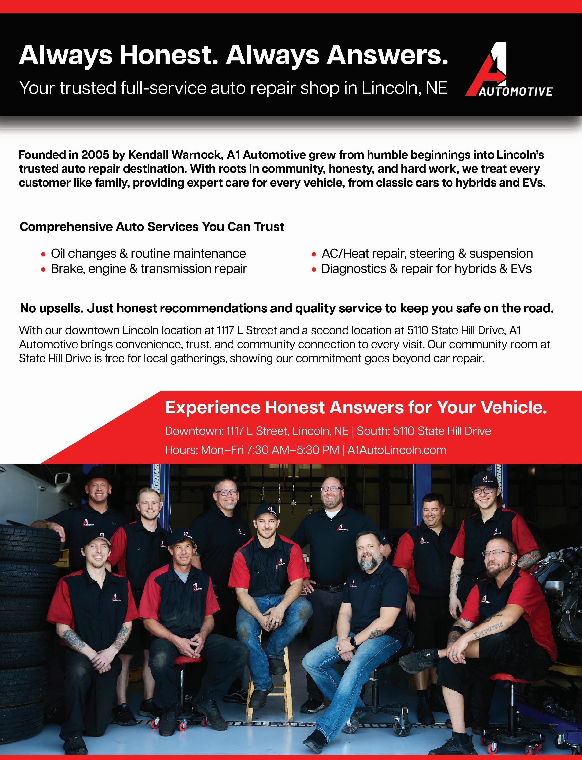 “Our mission is simple—to serve our community with excellence and build trust one vehicle at a time,” said Kendall Warnock, owner of A1 Automotive. “We believe automotive repair should be transparent, reliable, and centered around people.”