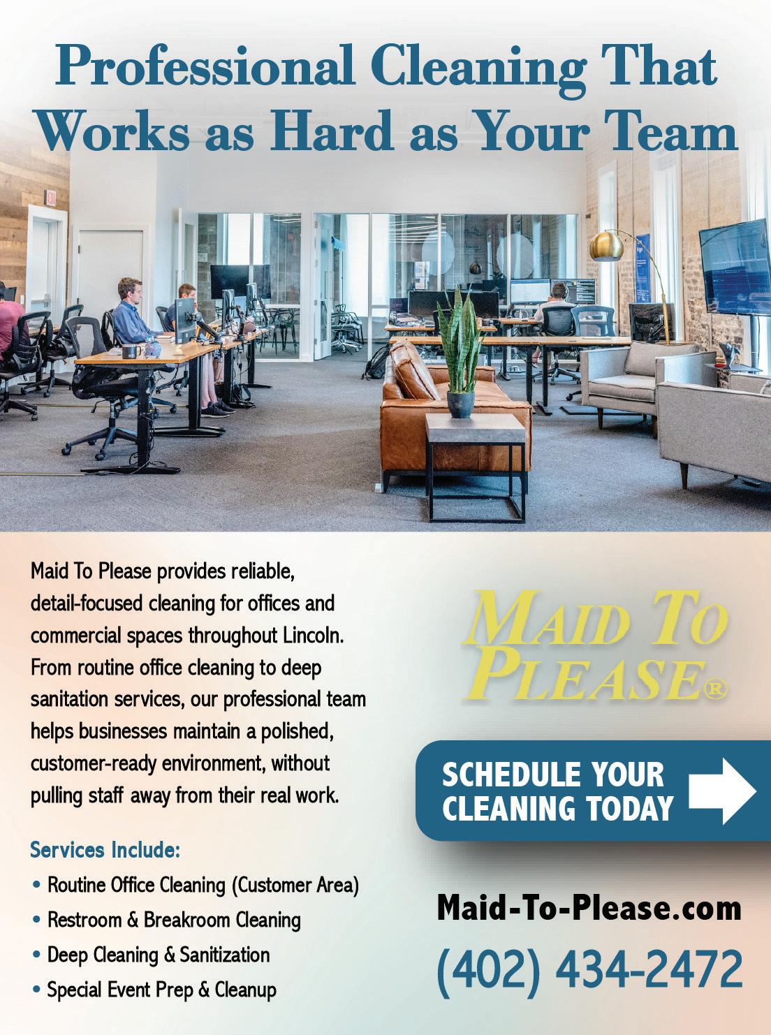 While regular business hours remain Monday through Friday, additional after-hours and weekend availability is expected to be introduced to support this growing line of service. Maid To Please looks forward to partnering with more Lincoln offices in 2026 and continuing to build long-term relationships within the local business community. Visit their website at maid-to-please.com or call (402) 434-2472.