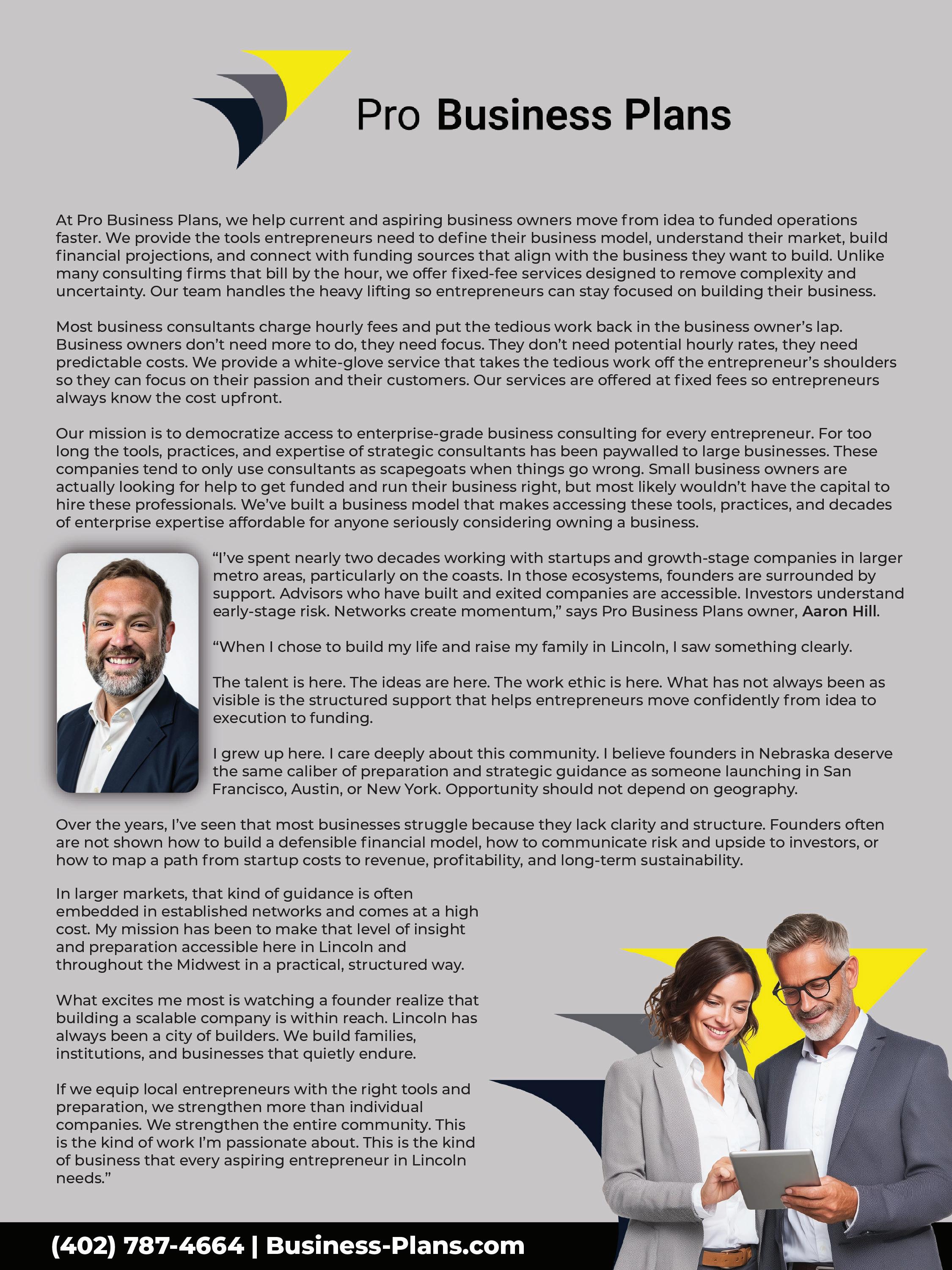 To get in contact, visit business-plans.com/business-services, email aaron@business-plans.com, or call (402) 418-2865.