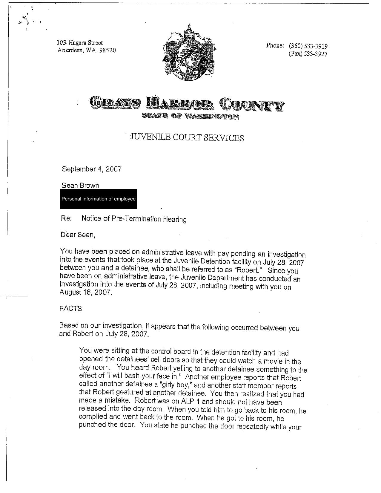 2.3 At all material times Plaintiff S.H. resided at Defendant Grays Harbor County’s Juvenile Detention Facility. Plaintiff was a victim of childhood sexual abuse at the Facility. See