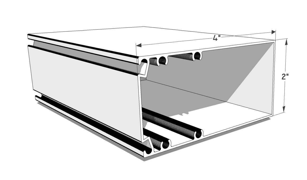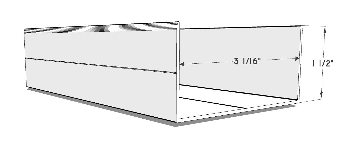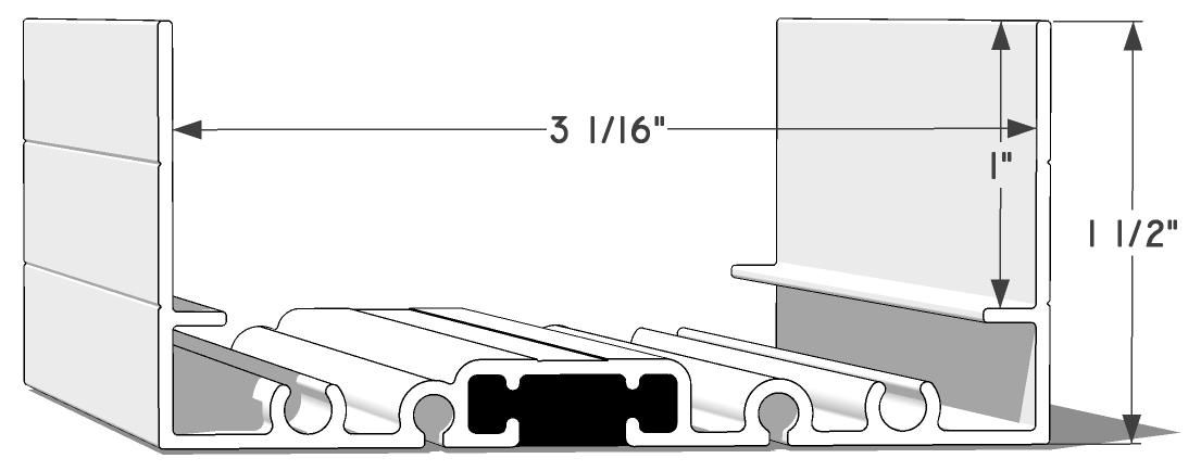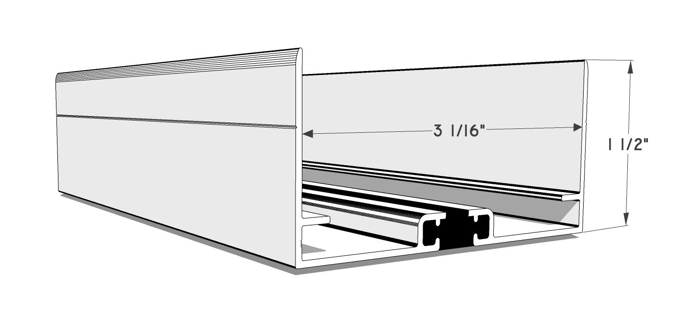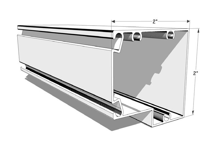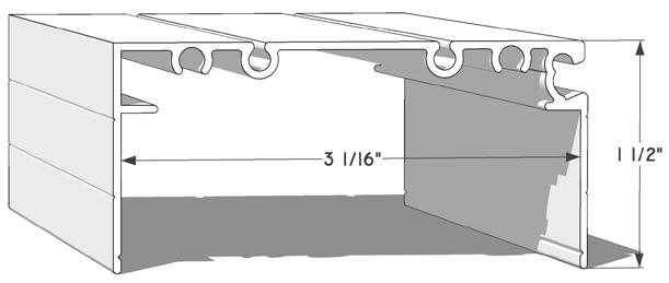 • Cont. 1.5” x 3” x .050” Alum. Fan Beam Extrusion.