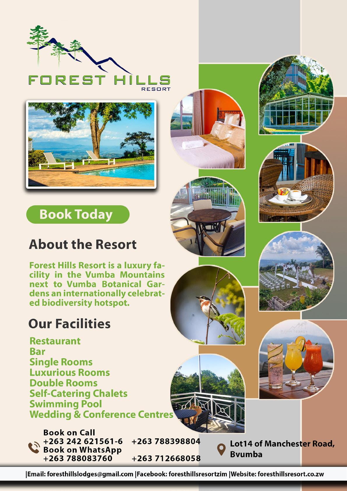 Forest Hills Resort is a luxury facility inthe Vumba Mountains next to Vumba Botanical Gardens an internationally celebrated biodiversity hotspot.