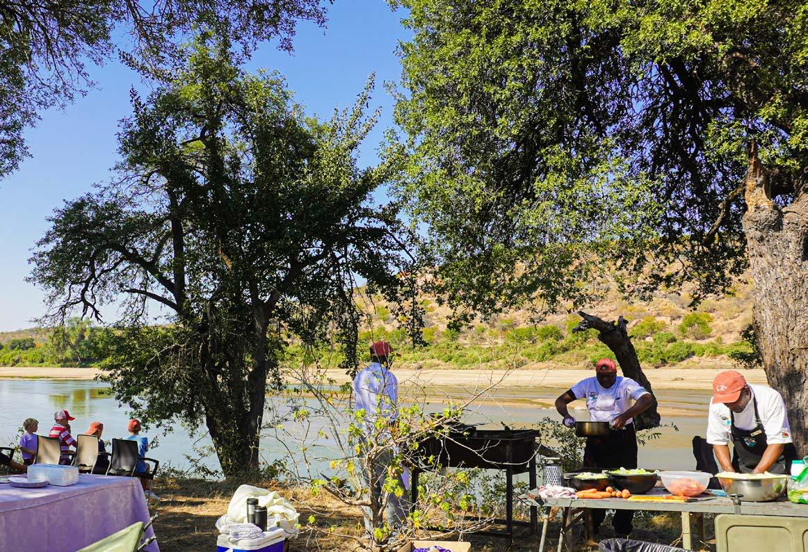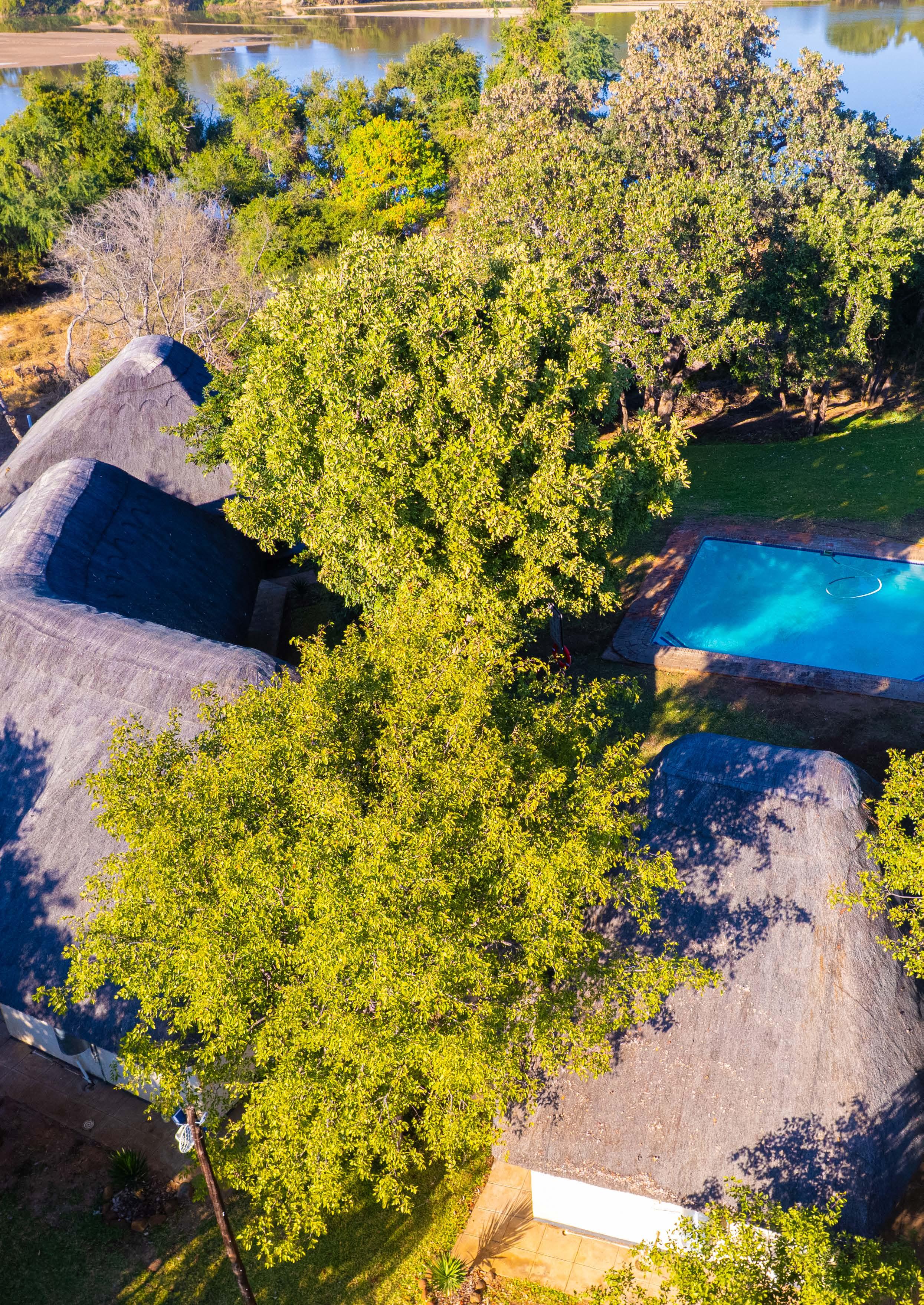 It offers modern king-bedded rooms with bathtubs and a contemporary dining, bar, and lounge area, all on a full-board basis. Kuduland Lodge, situated on the Limpopo River, features thatched chalets or Barocs with three-quarter beds and showers only. Its dining, bar, and lounge area are more basic, providing a traditional safari atmosphere. Kuduland Lodge operates on a dinner and breakfast basis and uniquely offers a self-catering option with camp cooks available to prepare meals using guest groceries, and also boasts a private swimming pool and camping facilities. Travellers choose between the two based on budget, preference for a luxury versus a basic but comfortable camp, and catering preferences.