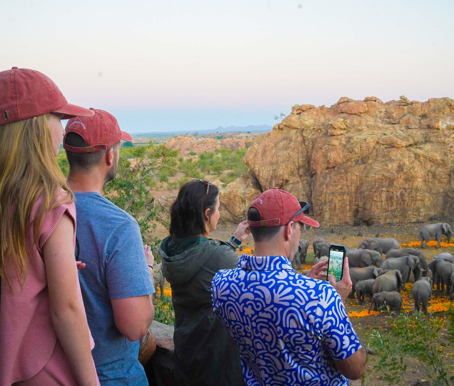 The air is filled with the calls of baboons, the trumpeting and rumbling of elephants, and the clicking hocks of eland, creating an unforgettable symphony of nature. "Our Flycamp and the elephant feeding phenomenon are what many clients refer to as 'the 8th wonder of the world.' Witnessing 200+ elephants feeding on citrus each night is something you won't find anywhere else," said Mason.