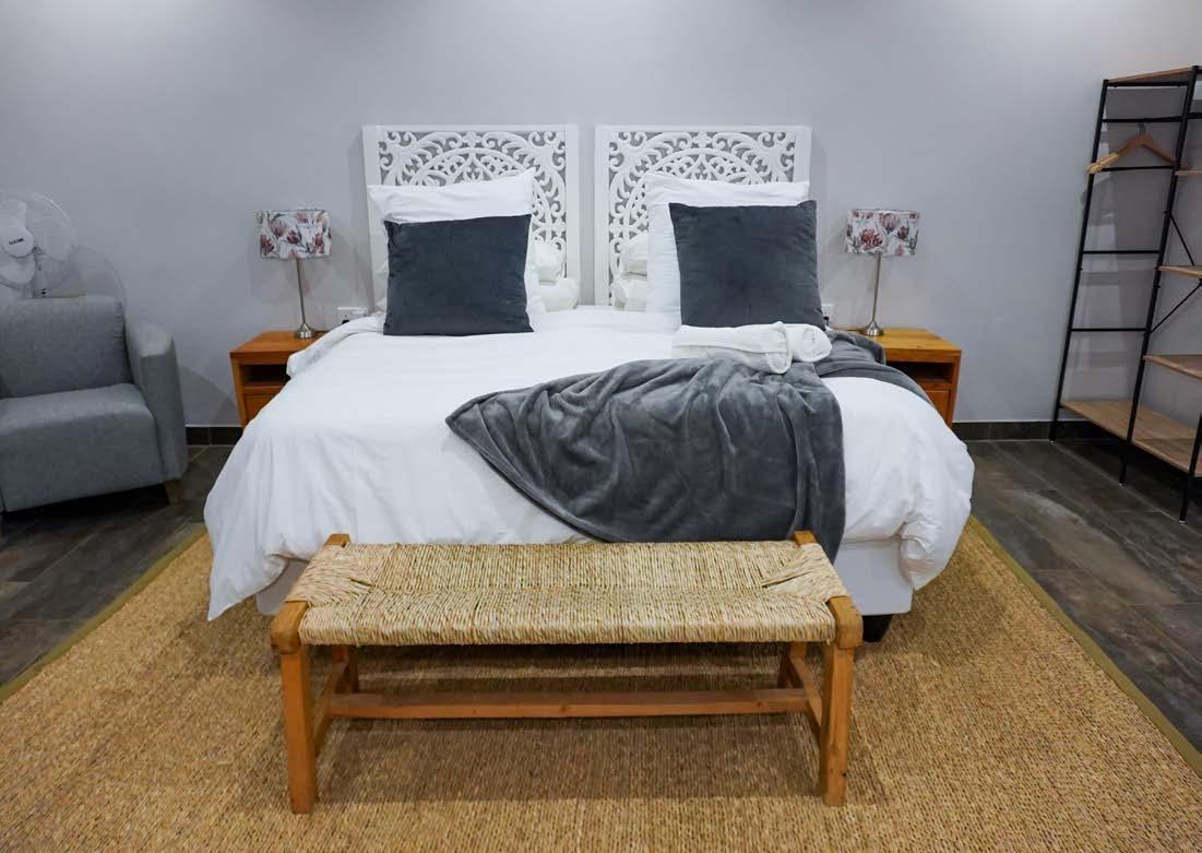 Relax in one of five elegant rooms with king-size beds, en-suite bathrooms, Wi-Fi, DSTV & Netflix.