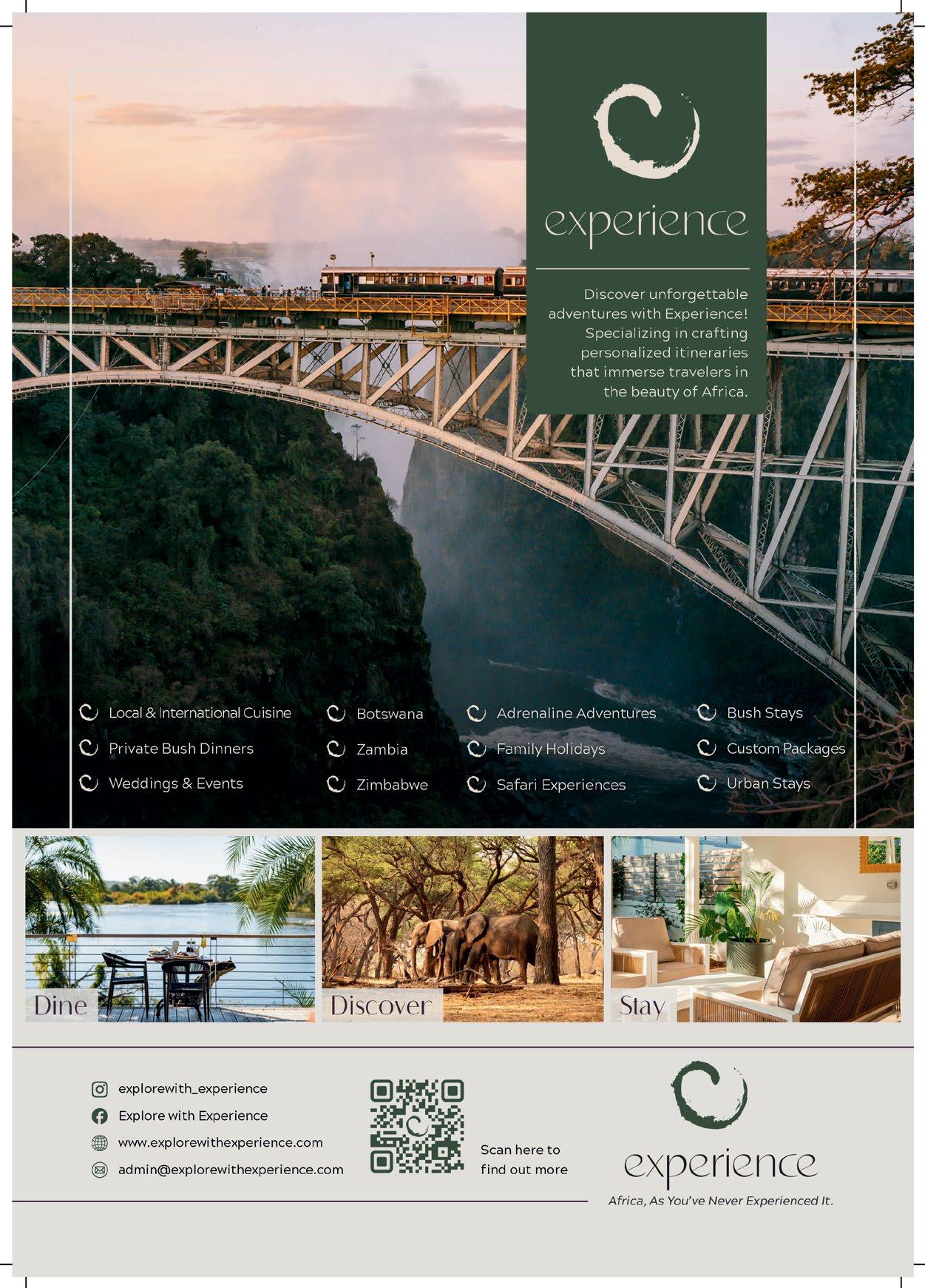 Conservation remains the heartbeat of the nation. In Matusadona National Park, the iconic Rhino Safari Camp has unveiled a new ownership structure, partnering with the Daka Plains team to reinforce its vision for sustainable, lowimpact tourism.