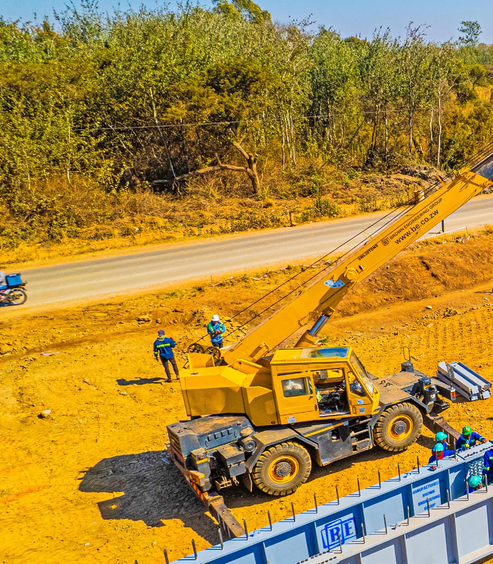 The construction of the new city in Mount Hampden is the talk of the town. It was delivered by many players who include National Crane & Equipment, offering a comprehensive suite of lifting solutions and earth moving machinery equipment rentals and sales. NCE helped with their regionally welldocumented expertise to bring up the Gwebi River Bridge. NCE boasts a diverse fleet of vehicles specifically designed to tackle lifting and access challenges in any environment – from cramped cityscapes to demanding construction sites.