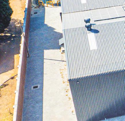 An intricate rainwater harvesting system complements this green energy initiative. Rainwater collected from the 1777-square-metre roof is directed into a sump, which then pumps it into a 228,000-litre water ZimDam reservoir.