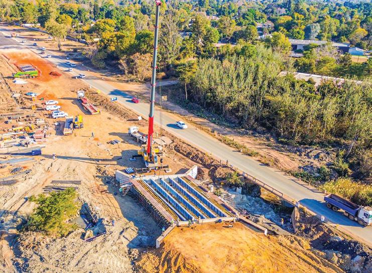 The project also benefited from the expertise of Brown Engineering and National Cranes & Equipment in erecting the bridge's steel structure, as well as the contributions of Fourways Concrete and Acsend Concrete for concrete supply.