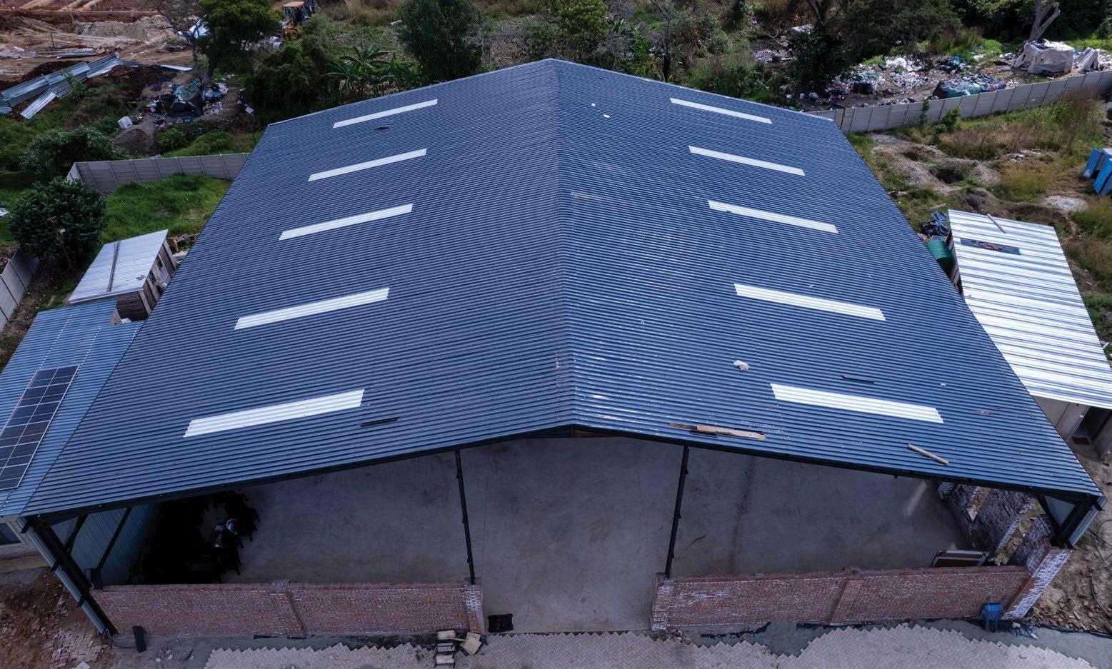 Structural work unfolded next, with a solid combination of strip and pad foundations anchoring the buildings. The mall’s framing system brought together reinforced concrete frames with brick infill panels and a hybrid roofing system using structural steel and timber, clad in durable Chromadek sheets.