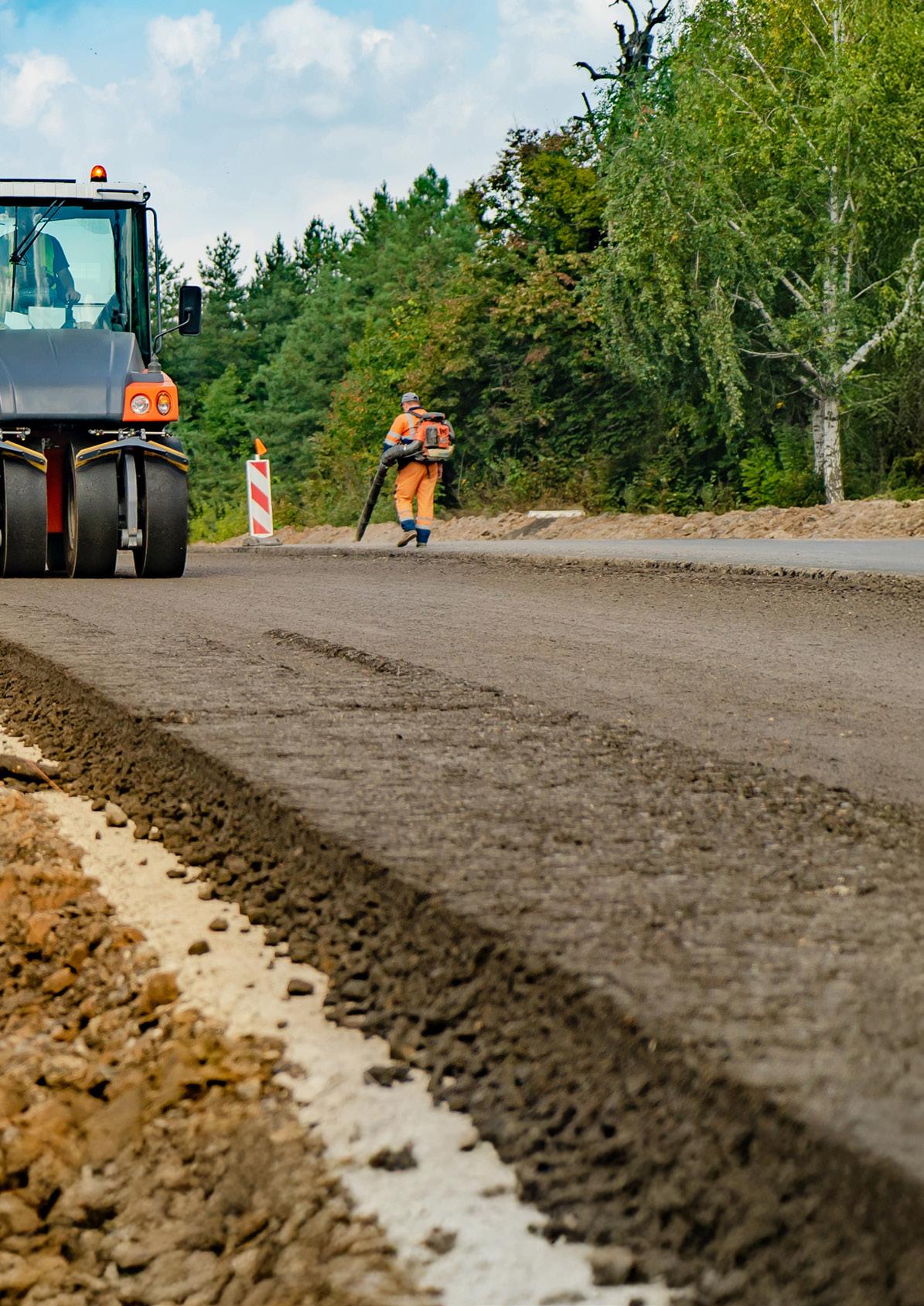 To build a new road in the traditional way consists of grading and levelling the soil, applying two or more layers of aggregate and then compacting the gravel, often using cement as a binder or stabiliser.