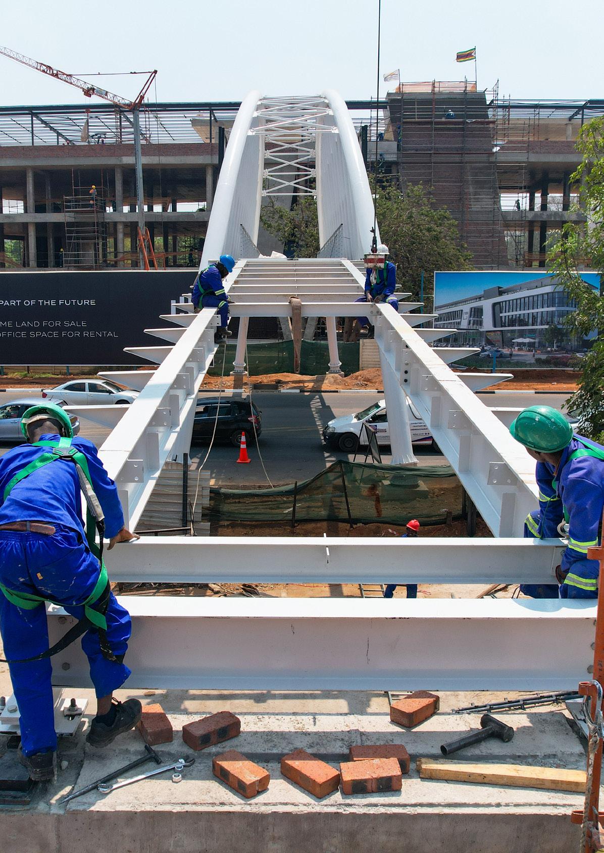 Urban development in Harare continues to accelerate with the erection of a new, world-class footbridge across the ED Mnangagwa Road section at Highland Park Mall. Spearheaded by Pat Dunn Zimbabwe, this pivotal project reshapes the city’s premier commercial hub, seamlessly connecting the iconic Highland Park Mall with the burgeoning Design Quarter development.