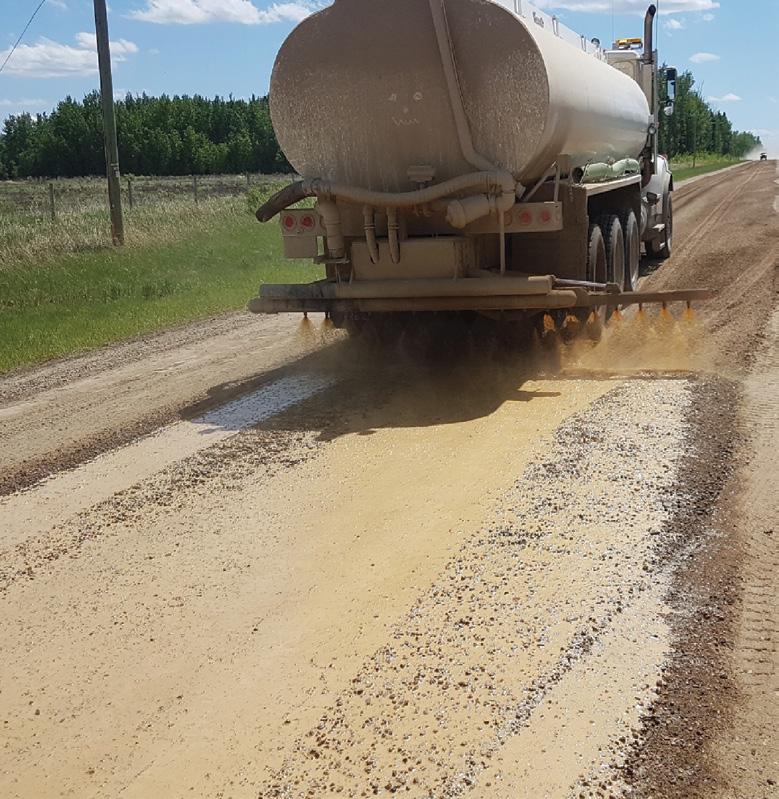 It also works on gravel roads without asphalt paving making it well suited to mining, forestry and rural roads. The binder is sometimes used at this stage and works well on fine or coarse graded material.