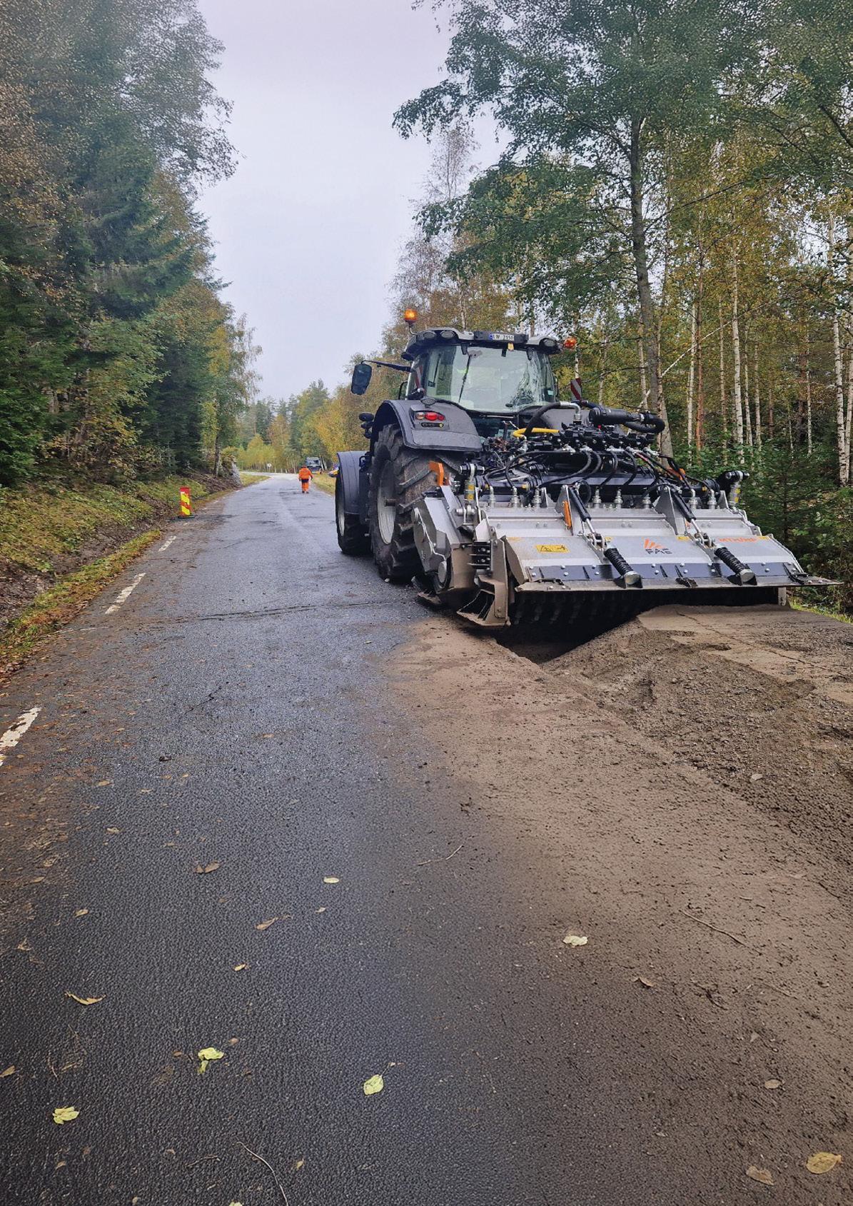 To explain the new process very simply – a crusher digs up the surface of the existing road (including old asphalt, soil and rocks) to depth of around 35cms to create a homogenous substrate.