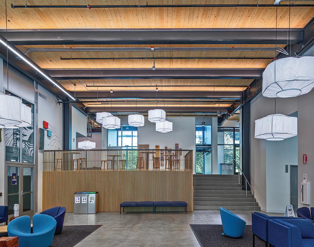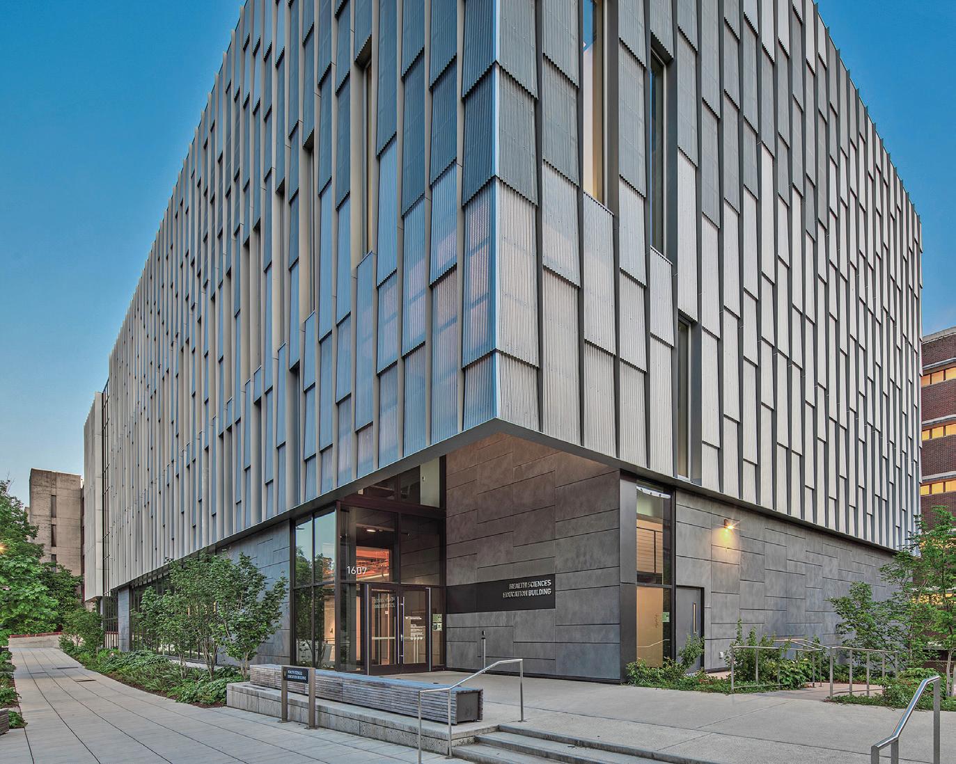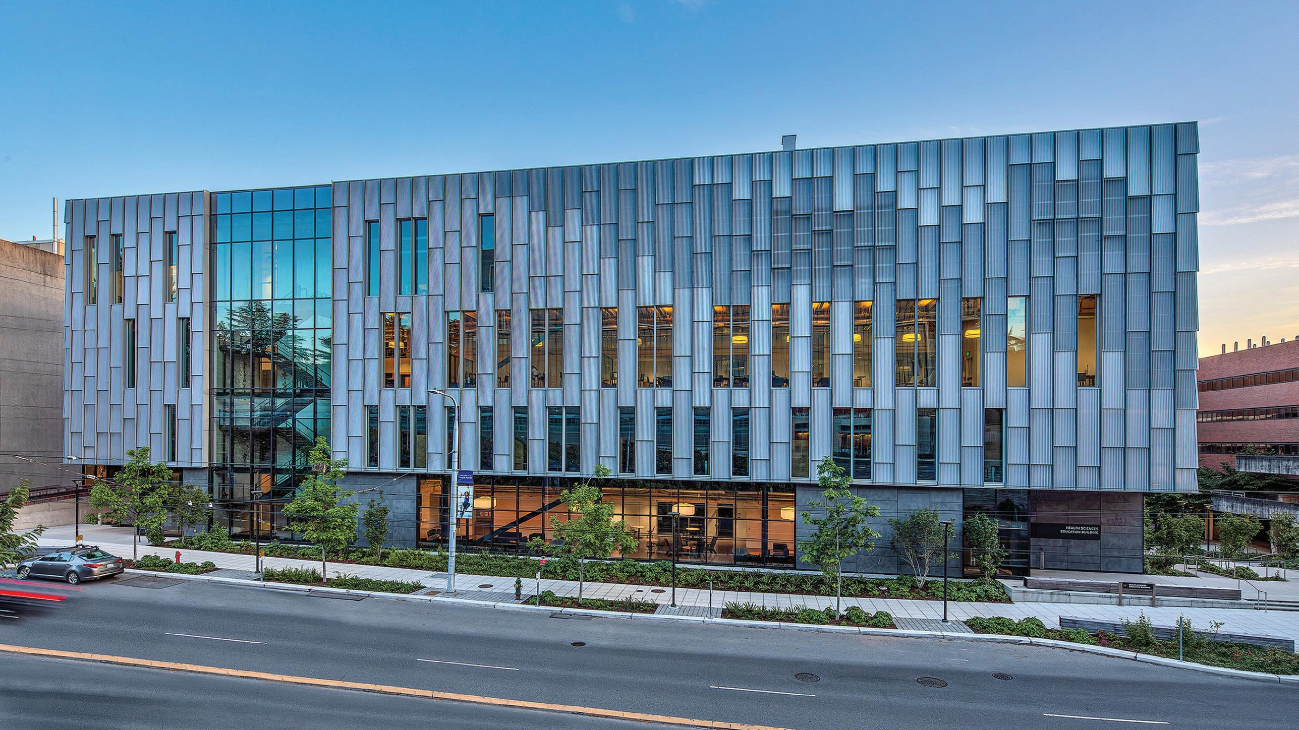 The four-story Health Sciences Education Building at the University of Washington represents a case study in hybrid mass timber.