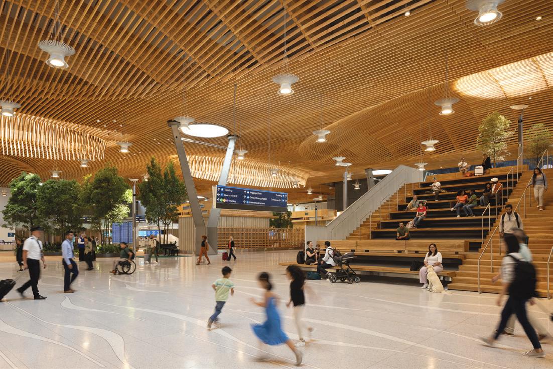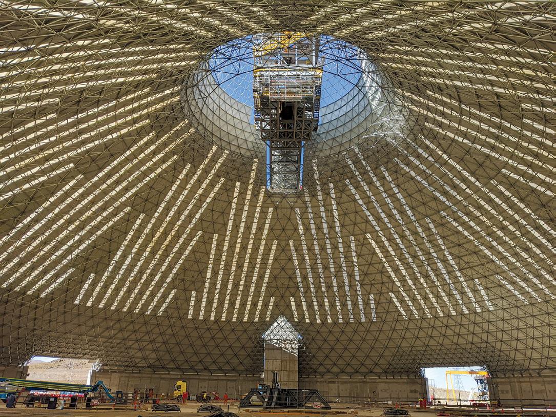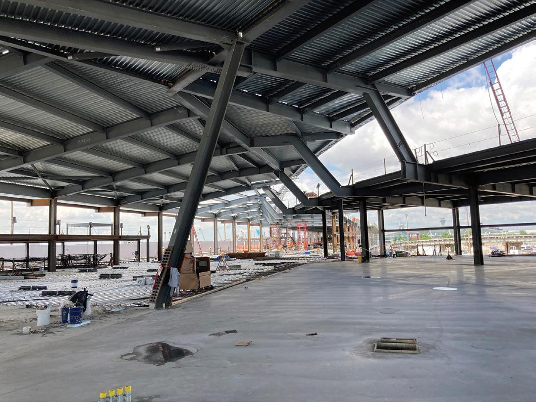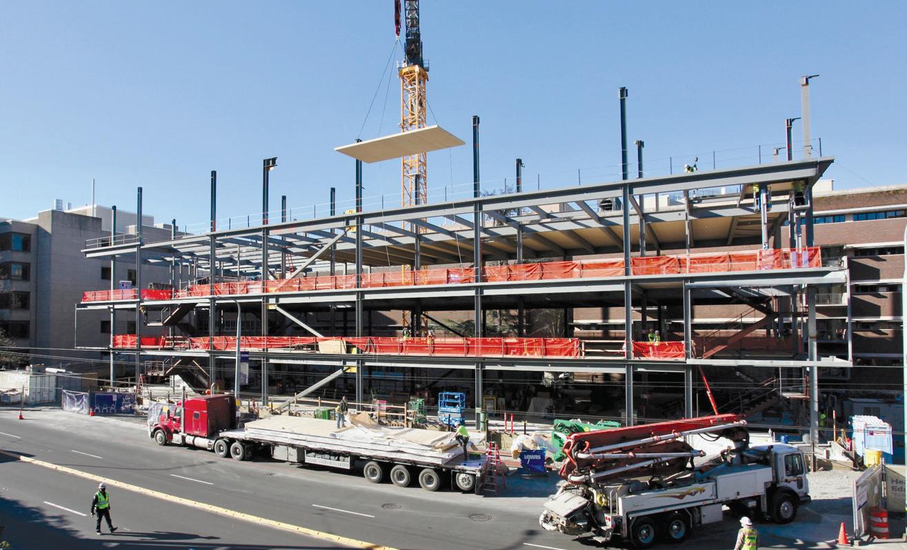 Designed by HGA, the 10-story, 690,000-squarefoot, LEED-certified facility will feature 30 operating rooms and 200 inpatient rooms when it opens in 2026. The tour, held in partnership with the AIA Young Members Group, offered participants a firsthand look at major construction milestones, including the completed nine-story concrete moment-frame superstructure, partial steel penthouse framing, curtain wall installation, and the structural system supporting a heavy MRI machine.