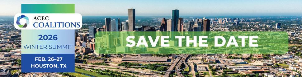 Register for the Winter Summit today at https://www.acec.org/ education-events/events/coalitions-winter-summit/ Both senior leaders and emerging professionals are encouraged to attend, ensuring that discussions reflect a range of experience and perspectives across the engineering disciplines.