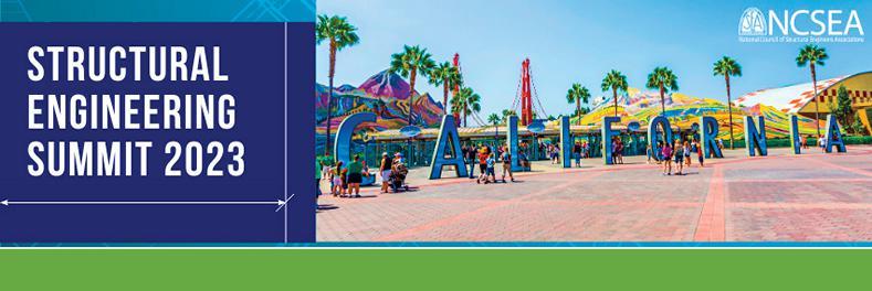 anaheim: disneyland hotel| November 7-10, 2023 EARLY BIRD PRICING ENDS 9/30! 2023 STRUCTURAL ENGINEERING SUMMIT ncseasummit.com Join the best and brightest SE thought leaders this November! Engage in 14+ hours of high-quality education, reconnect with colleagues, have fun with friends, and network with suppliers showcasing the latest in technology and services to help you be the best you can be.