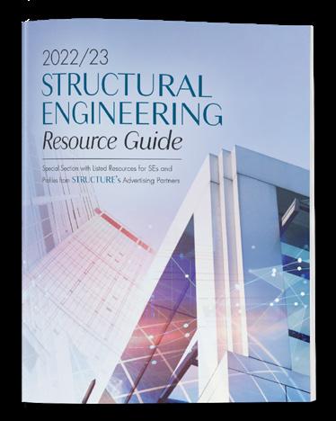 STRUCTURE ® magazine (ISSN 1536 4283) is published monthly by The National Council of Structural Engineers Associations (a nonprofit Association), 20 N. Wacker Drive, Suite 750, Chicago, IL 60606 312.649.4600. Periodical postage paid at Chicago, Il, and at additional mailing offices. STRUCTURE magazine, Volume 29, Number 10, © 2022 by The National Council of Structural Engineers Associations, all rights reserved. Subscription services, back issues and subscription information tel: 312-649-4600, or write to STRUCTURE magazine Circulation, 20 N. Wacker Drive, Suite 750, Chicago, IL 60606.The publication is distributed to members of The National Council of Structural Engineers Associations through a resolution to its bylaws, and to members of CASE and SEI paid by each organization as nominal price subscription for its members as a benefit of their membership. Yearly Subscription in USA $75; $40 For Students; Canada $90; $60 for Canadian Students; Foreign $135, $90 for foreign students. Editorial Office: Send editorial mail to: STRUCTURE magazine, Attn: Editorial, 20 N. Wacker Drive, Suite 750, Chicago, IL 60606. POSTMASTER: Send Address changes to STRUCTURE magazine, 20 N. Wacker Drive, Suite 750, Chicago, IL 60606.