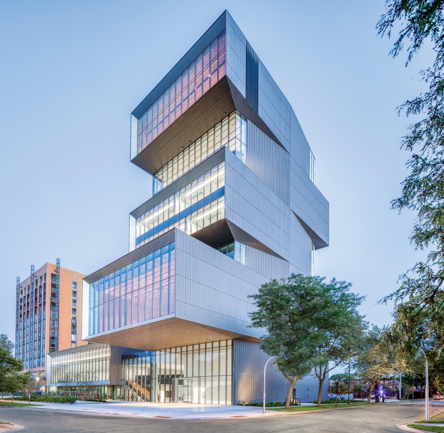 The David Rubenstein Forum at the University of Chicago is a 2-story podium and a 10-story tower of meeting rooms and social space neighborhoods. The structural system comprises a series of simple individual structural elements stacked to create desired open spaces efficiently. Incorporating post-tensioned concrete into the structural design was crucial to achieving the design’s long spans, cantilevers, and column-free spaces of up to 65 feet.
