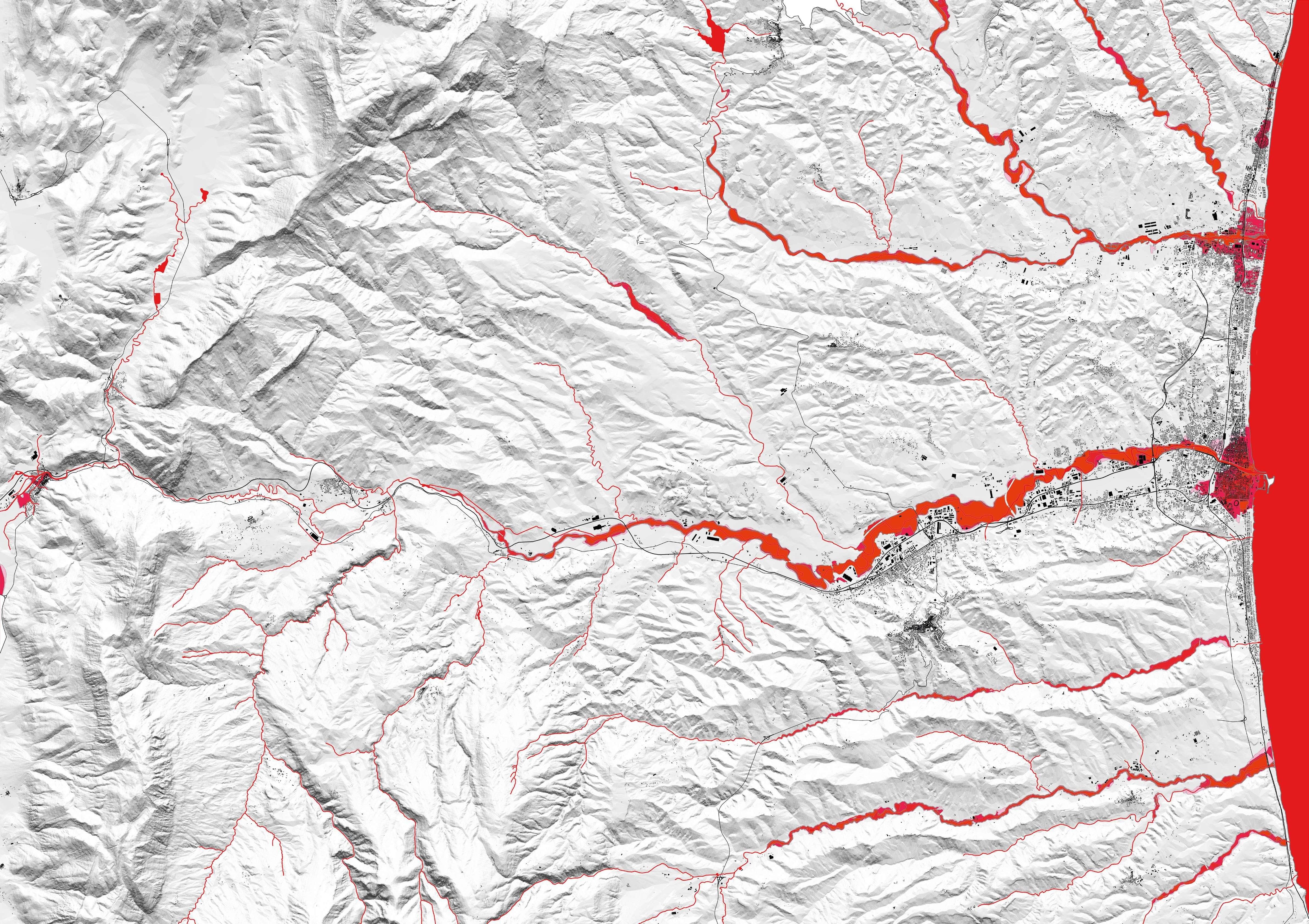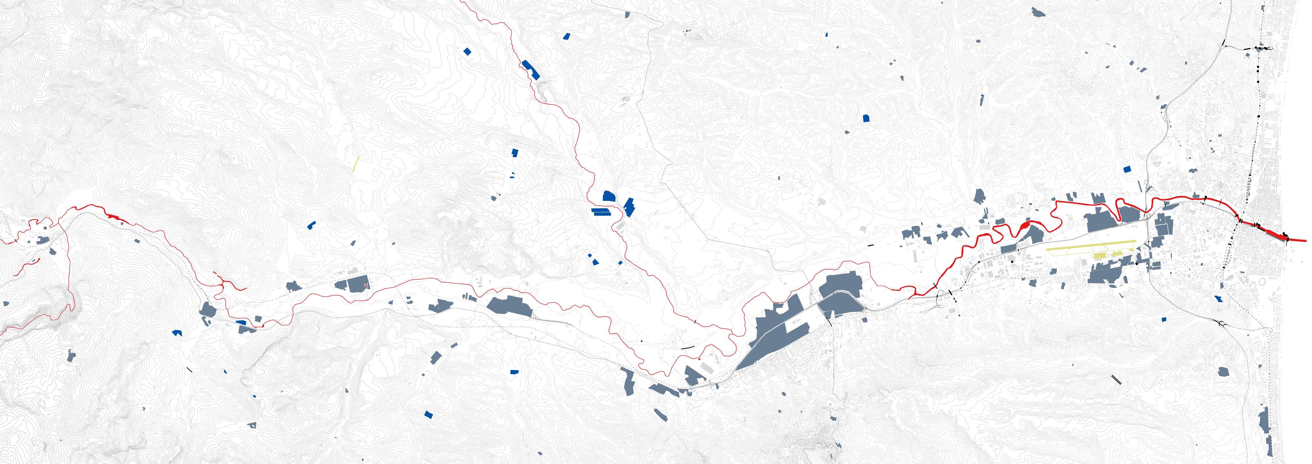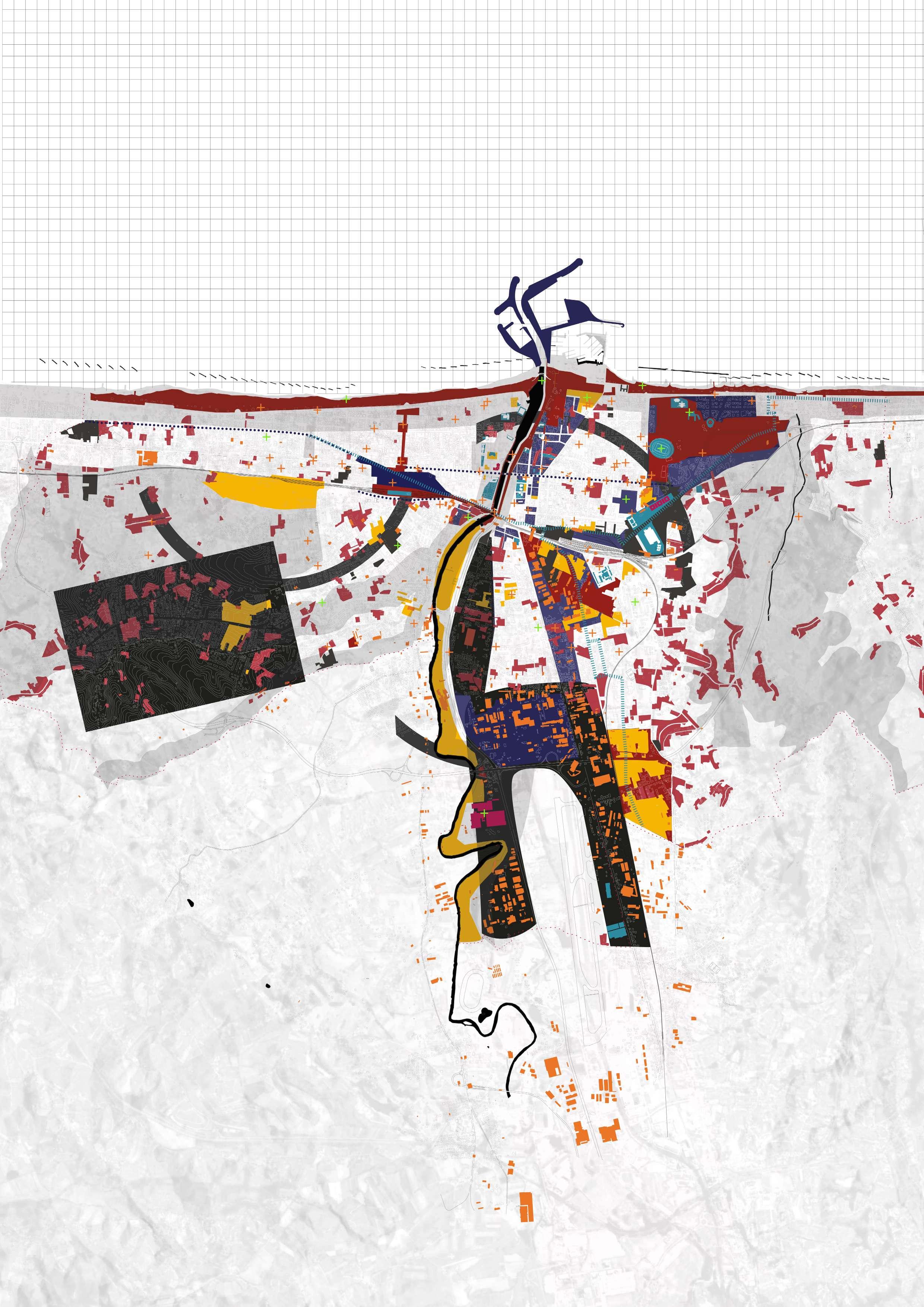 1. La rigenerazione del suolo. Il tema è oggi assolutamente centrale come si è già detto. Questa strategia può svilupparsi sia con riferimento alla scala territoriale sull’alto corso del Pescara dove da sempre insistono grandi impianti produttivi inquinanti, sia con riferimento alla città. Questo è un lavoro che si concentralazione del suolo. Un primo esito è una sorta di Critical Placeste, rilievi, alveo, spazi abbandonati con attenzione a quali tipi di inquinamento nell’acqua e nel suolo. Con riferimento alla città si può iniziare ad osservare come questa sia stata associata solitamente alla distruzione del suolo. Il che non è così evidente. Anche in questo caso l’esercizio procederà attraverso la costruzione di archivi topologici; critical observatories, mosaici di suoli
