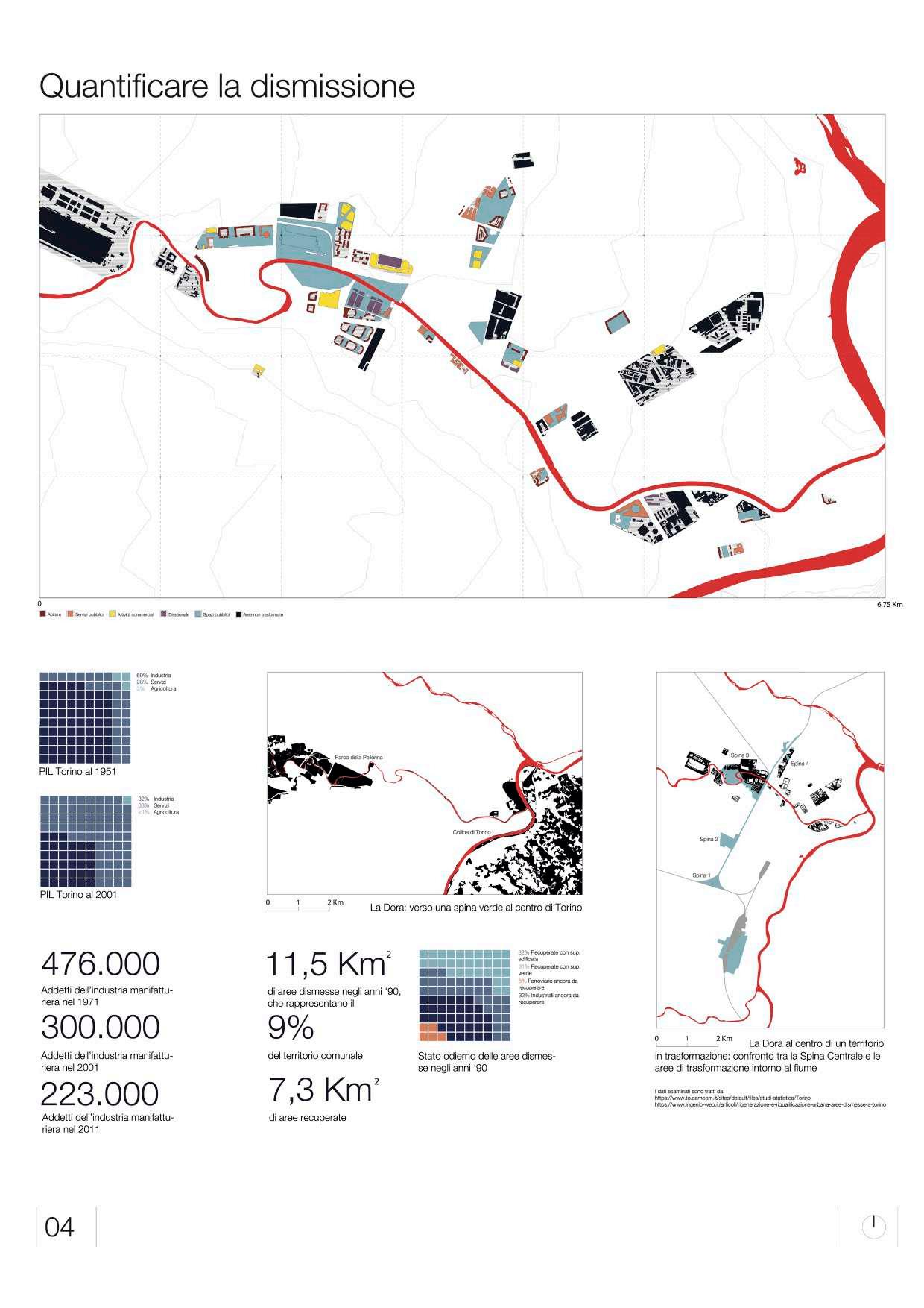 01. La questione centrale del PRG di Gregotti e Cagnardi è quella della dismissione. Le aree di trasformazione, nella maggior parte dei casi aree industriali dismesse, ammontano a quasi 9 milioni di metri quadrati (su 130 milioni).