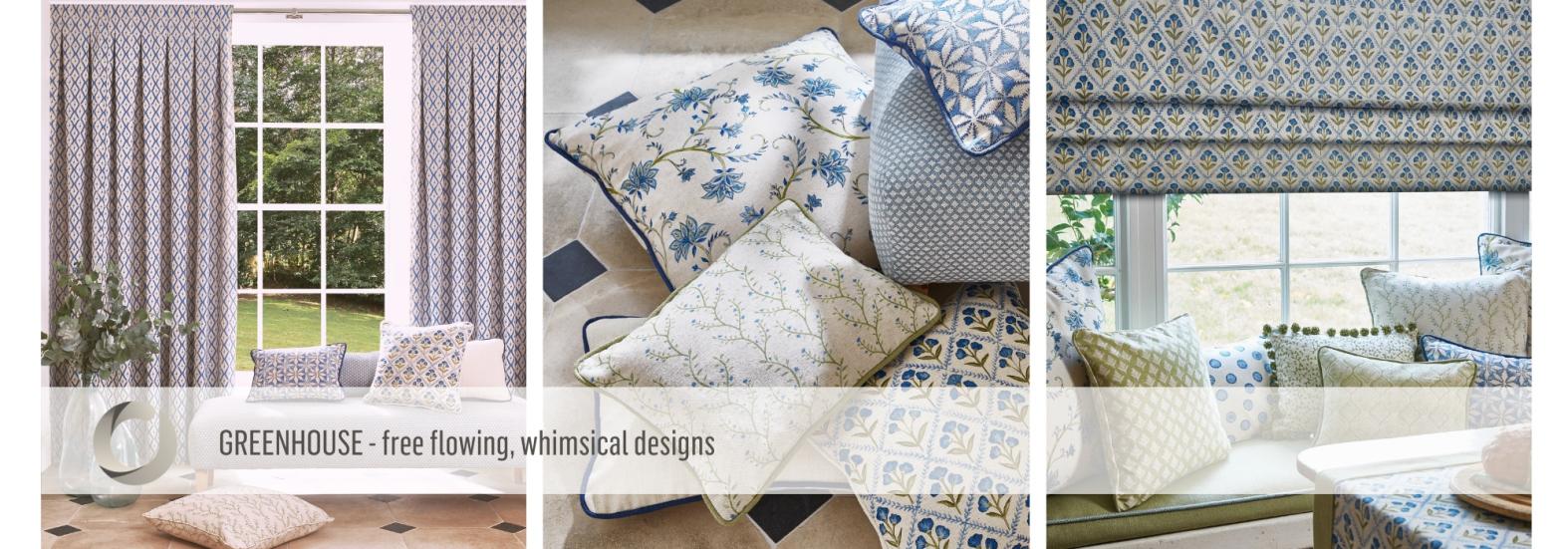 Lose yourself in the free-flowing, whimsical designs of Greenhouse. Inspired by tranquil landscapes of the English countryside, on-trend block prints take centre stage, creating a beautifully detailed and organic look throughout. Hand-drawn patterns depicting intricate, small-scale scenes of country flora rest on a cotton linen-blend base cloth, offering a quintessentially rustic feel. The undeniable charm of Greenhouse is enriched by its true-to-style country palette, from vibrant poppy reds that contrast softly textured linens to lighter, delicate sage-green tones.