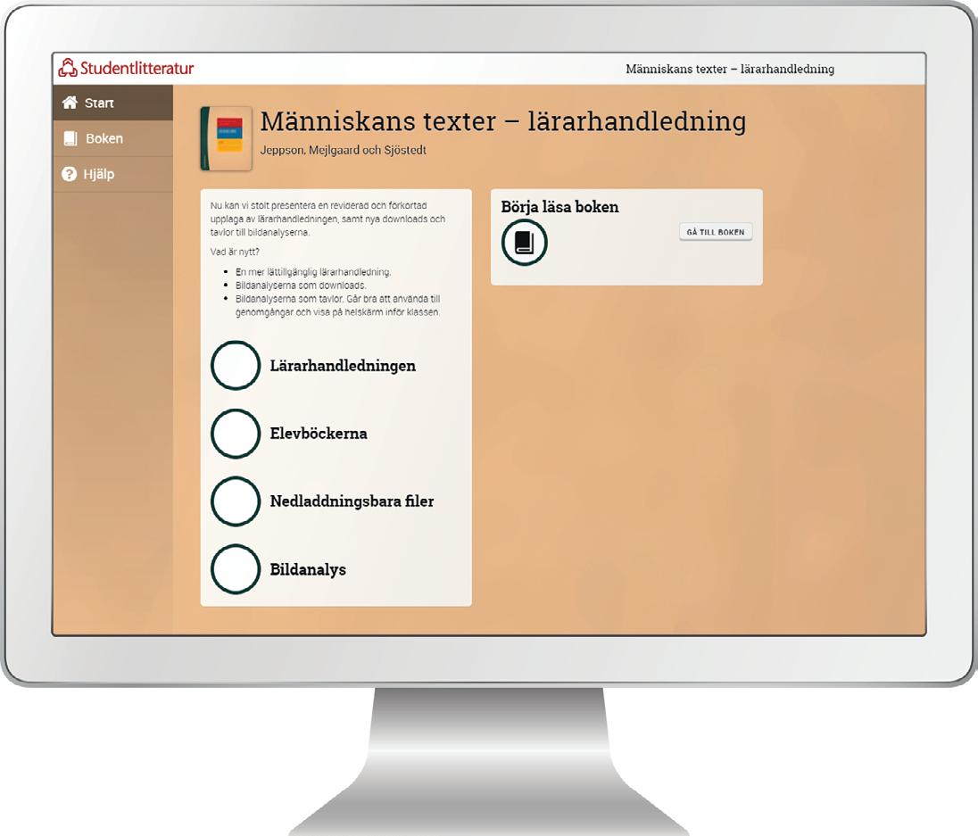 Till hjälp i arbetet med Människans texter finns ett ambitiöst lärarpaket bestående av en tryckt lärarhandledning samt digitala resurser. Lärarpaketet täcker de tre huvudkomponenterna i Människans texterserien: Språket, Litteraturen och Antologin. Lärarpaketet ger dig även tillgång till elevernas digitala läromedel, så att du enkelt kan ha genomgångar inför klassen. Tre lärare kan dela på ett lärarpaket, med samtidig tillgång via egna inloggningar.