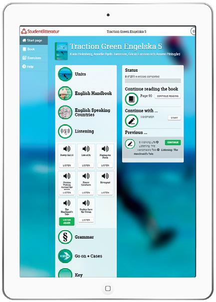 Funktionerna i det digitala läromedlet är intuitiva och självförklarande. Det är enkelt att få översikt, hitta, markera, anteckna, lyssna och öva. De interaktiva övningarna sparas och ger eleverna bra vägledning genom dynamisk feedback.