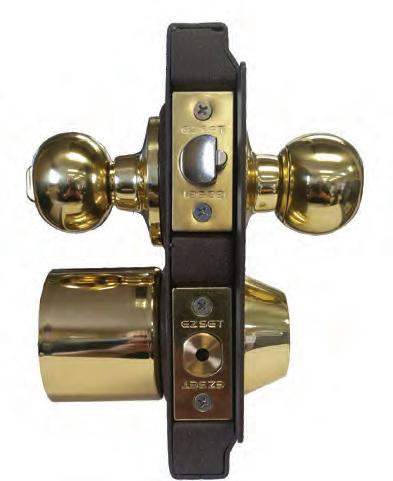 Key unlocks both deadbolt and exterior knob latch with panicproof interior knob. Molded one-piece heavy gauge steel latch guard prevents outside tampering.