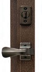 Heavy gauge steel latch guard prevents outside tampering. Available on all door styles. Standard on all Full View door styles.
