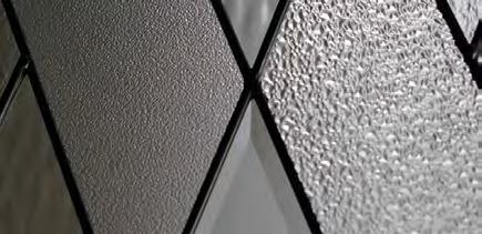 Beautiful geometric lines create a pattern that will compliment a myriad of architectural styles. Gray accents combine with a variety of textured glass for a look that is interesting yet subtle.