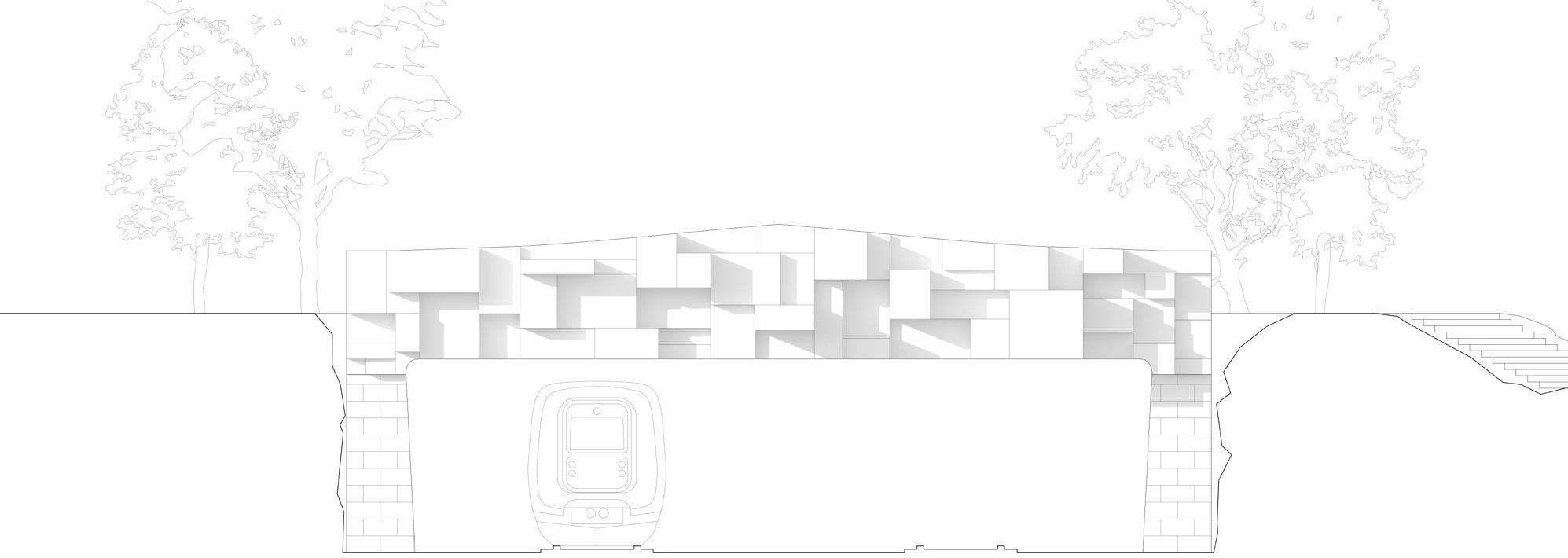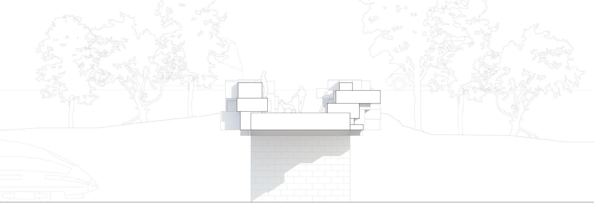 The intervention plays on the history of limestone processing aswell as the historical resilience the bridge has shown. The foundations tell a story - and it is a classical one, while the “bridge-gables” as of now remain quite anonymous. The idea is to tell two stories - one that relates to the history of the area, and one that relates to the underlying architecture.