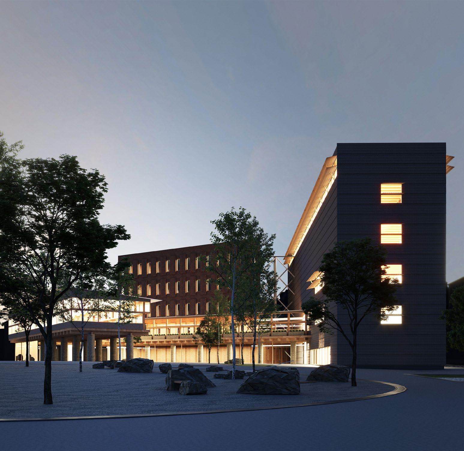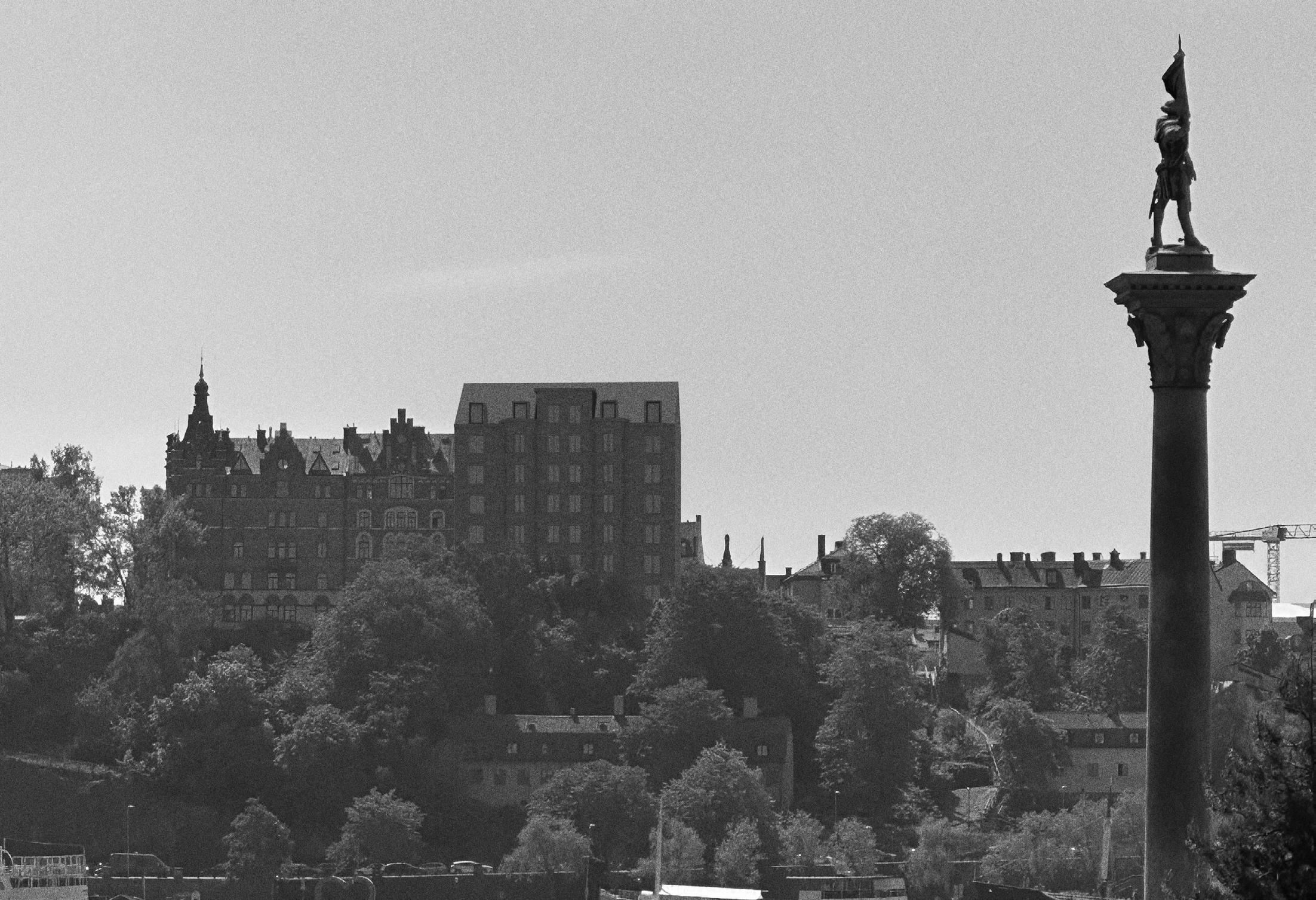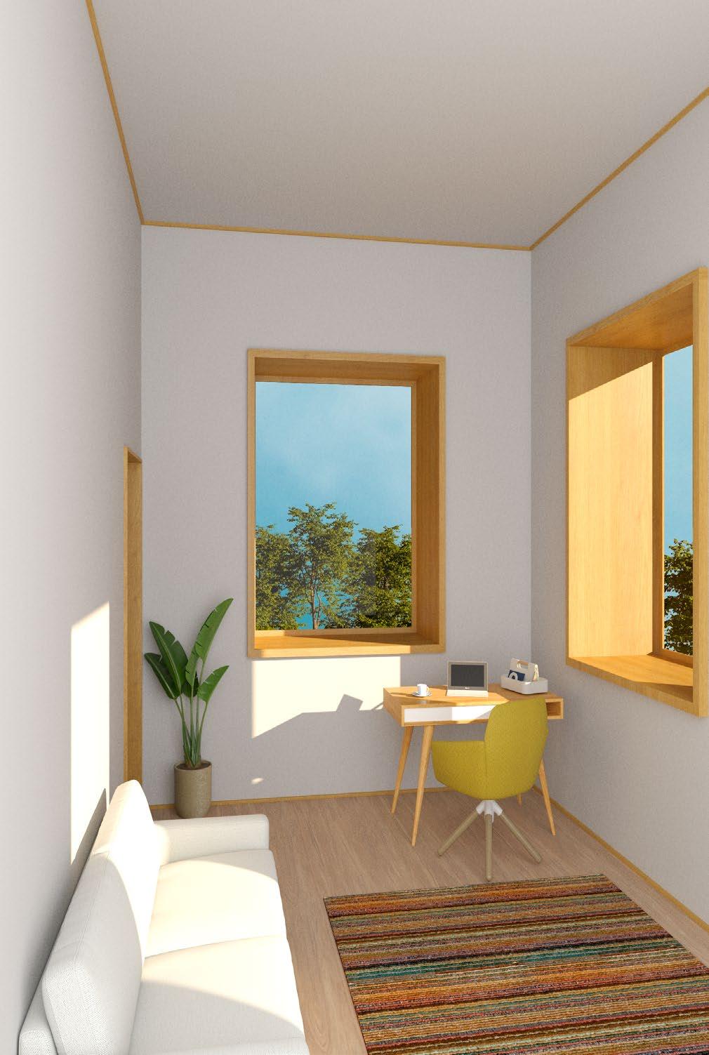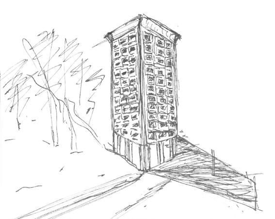 N.Djurgården 1:49 is a project situated in the heart of KTH-campus in Stockholm. The program consists of 16 stories of student housing with a building footprint constraint of 20x20 meters. Furthermore, the loadbearing structure of the building has to be composed mainly out of cross laminated timber elements. The project plays on the architectural ambiguity of its surrounding where each existing building has no clear relation to one another. Some buildings are old, while some are very recent in execution, giving the area an interesting mix in aesthetics. The idea was to follow this “theme” of the area while still upholding a sense of relatabilty to the city of Stockholm and its architecture. The result was comprised of a rendered facade in an earthy-orange colour (a colour which is very typical for the “Stockholm-palette” of the buildings in the city), adorned with oversized, protruding window frames, giving the fenestration of the buildning a bold and different aesthetic compared to its surroundings. Lastly, the crown of the edifice features overhanging eaves which encompasses the project with a type of post-modern aura.