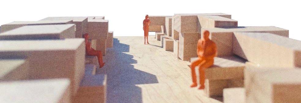 The result is an arrangement of massive limestones, shifted against the walking plane of the bridge perpendicularly, in order to create different types of rooms in the bridge. This way we can feel the material by touching it, smelling it or just sitting on it, while also experiencing space.