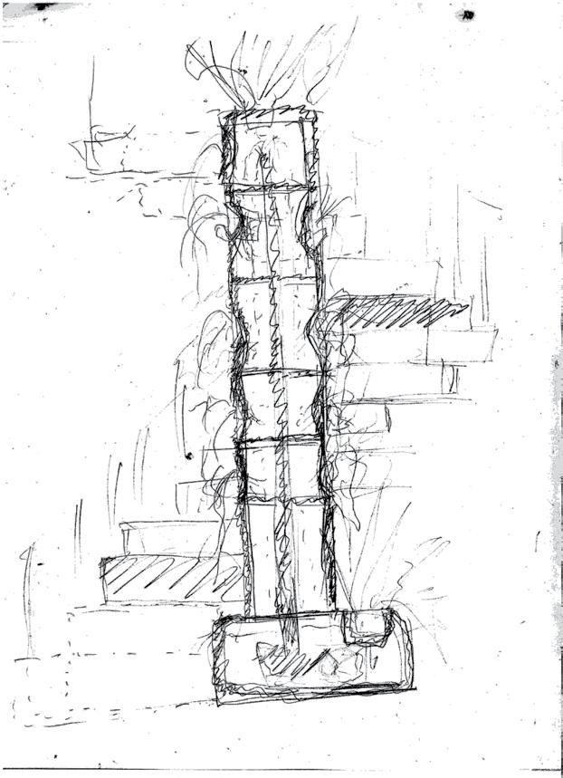 The limestones have been arranged in a seemingly random way in order to contrast the rationality of the foundations.