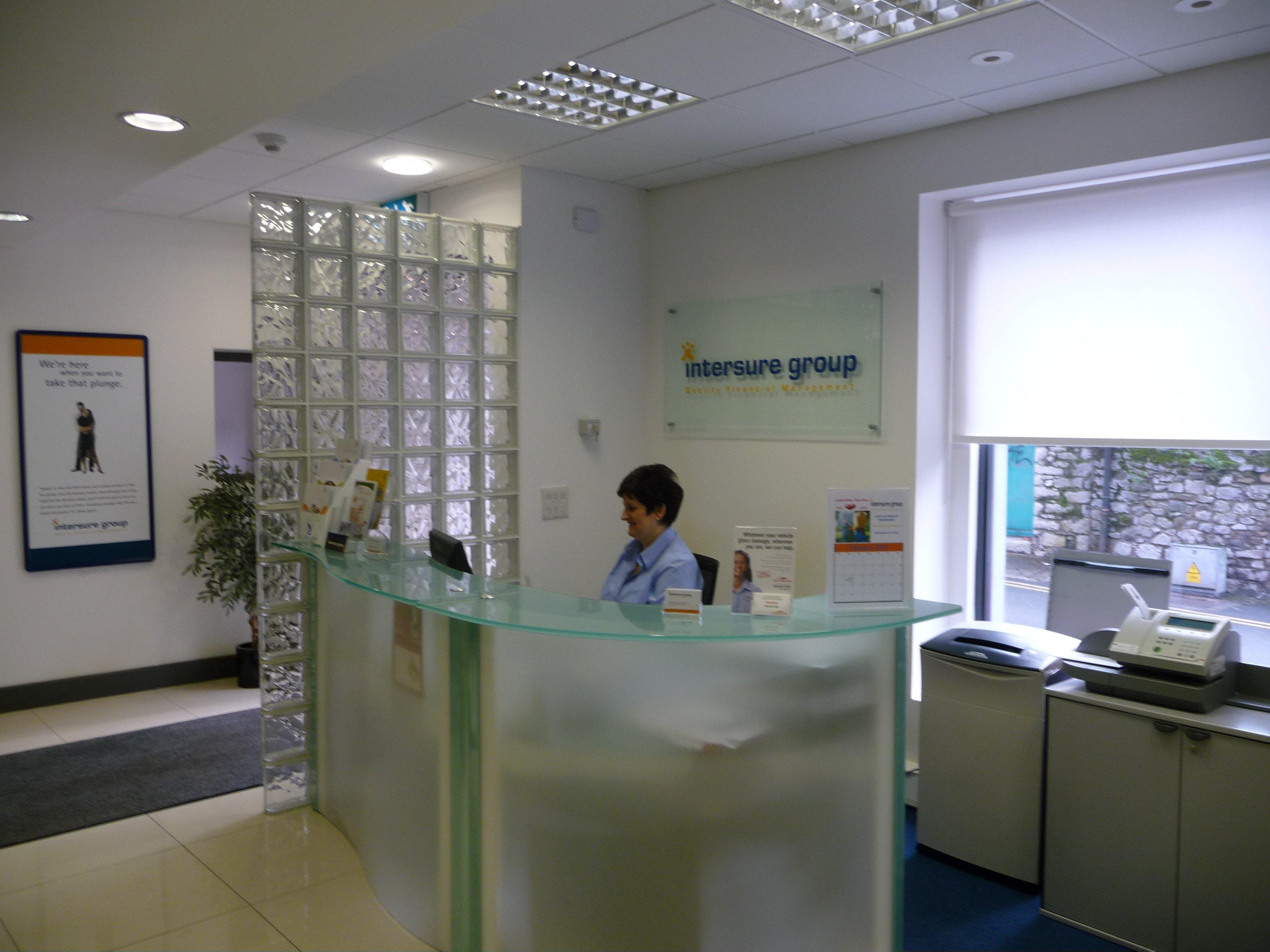 Integrating Glass Brick with Glass Reception Desk.