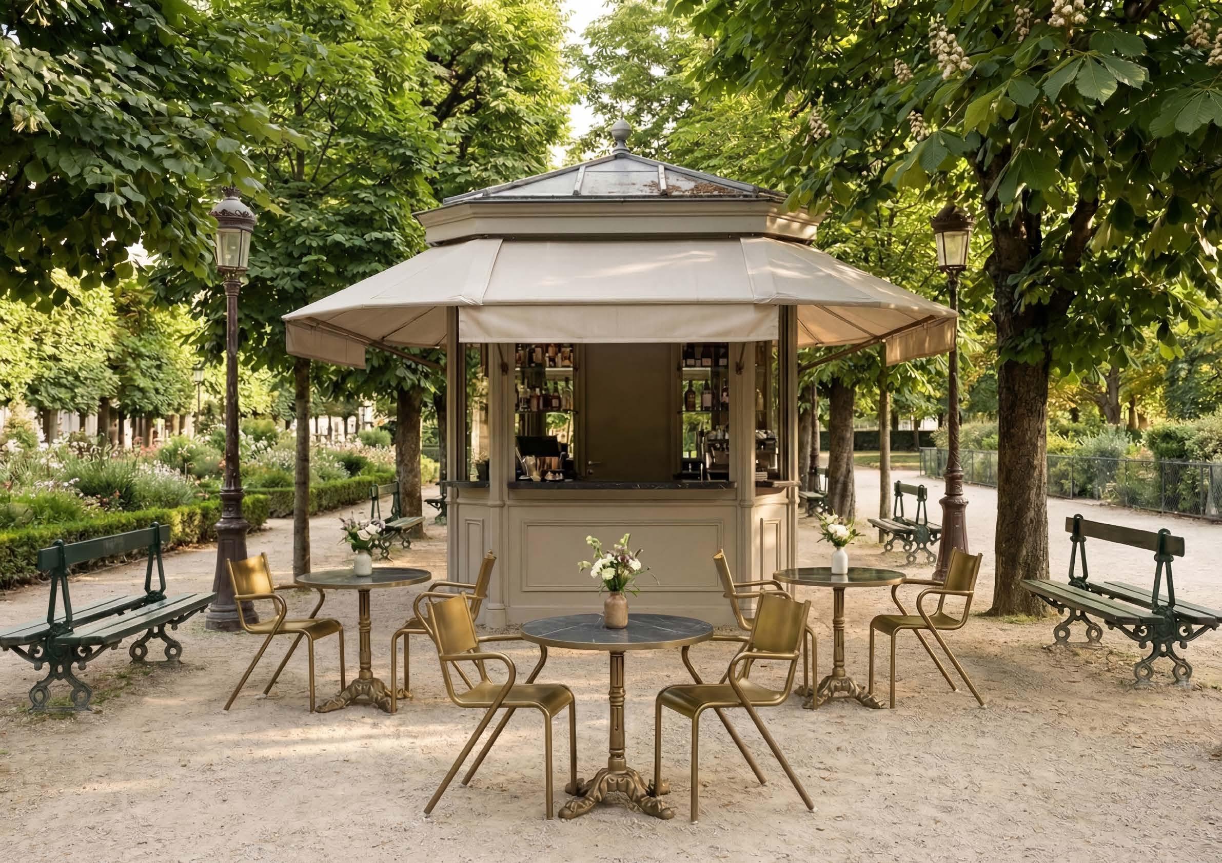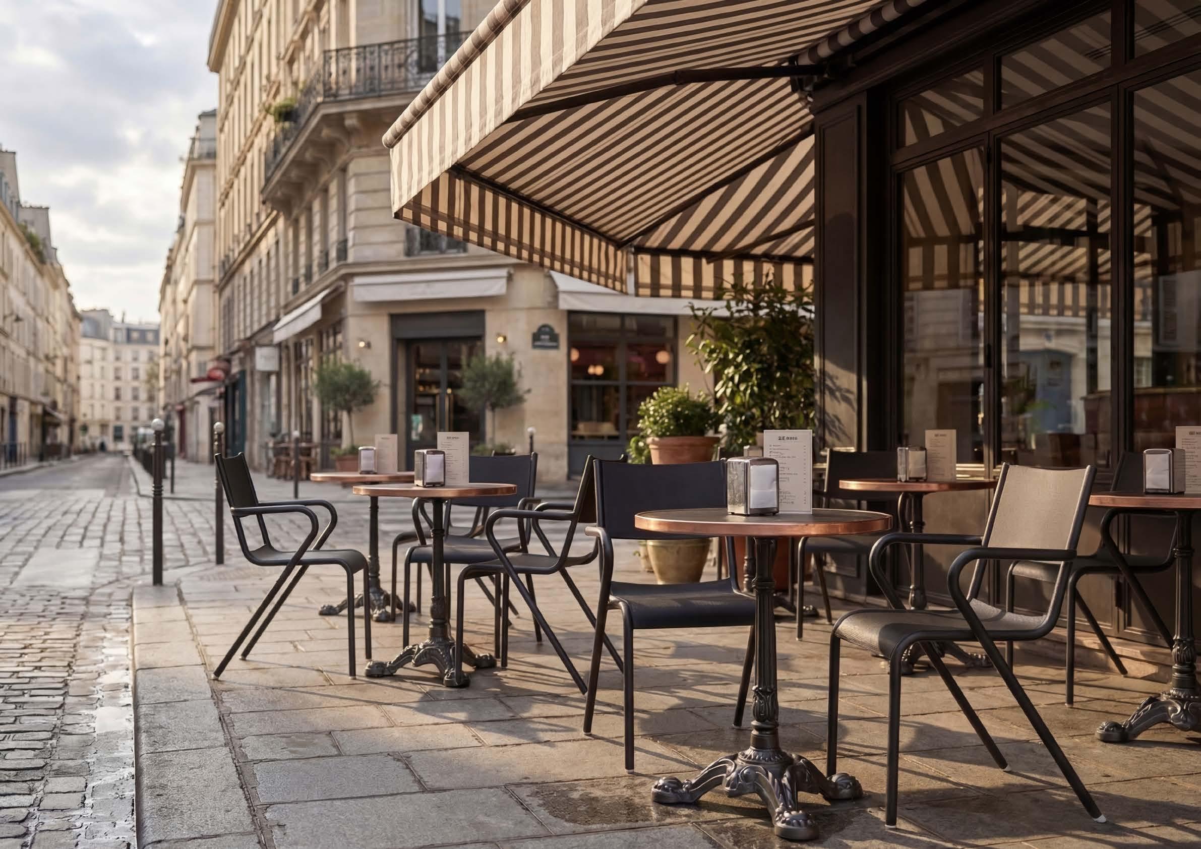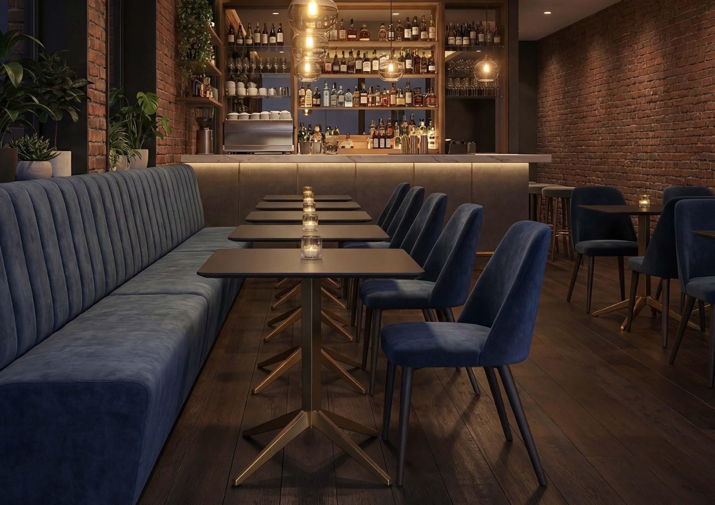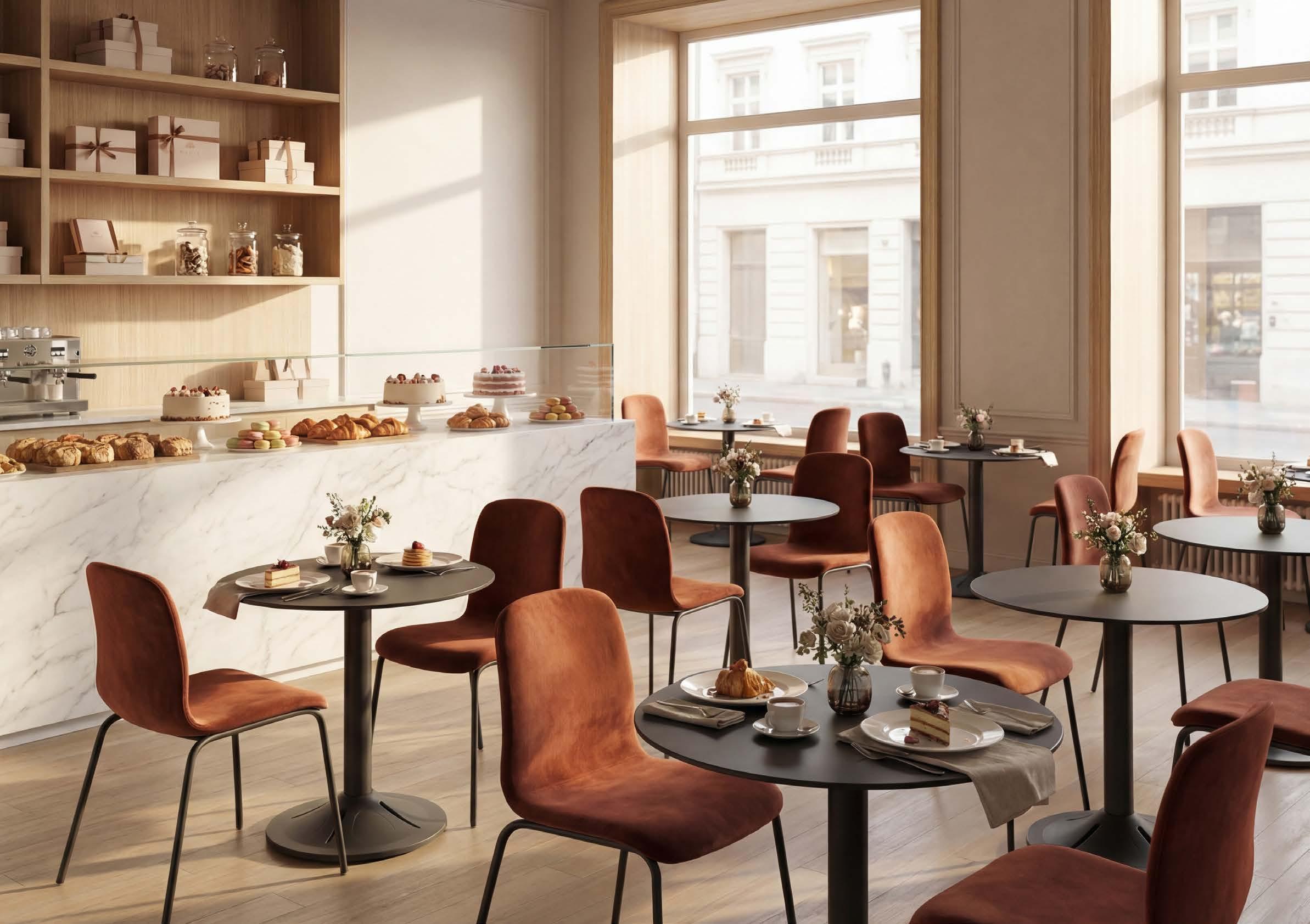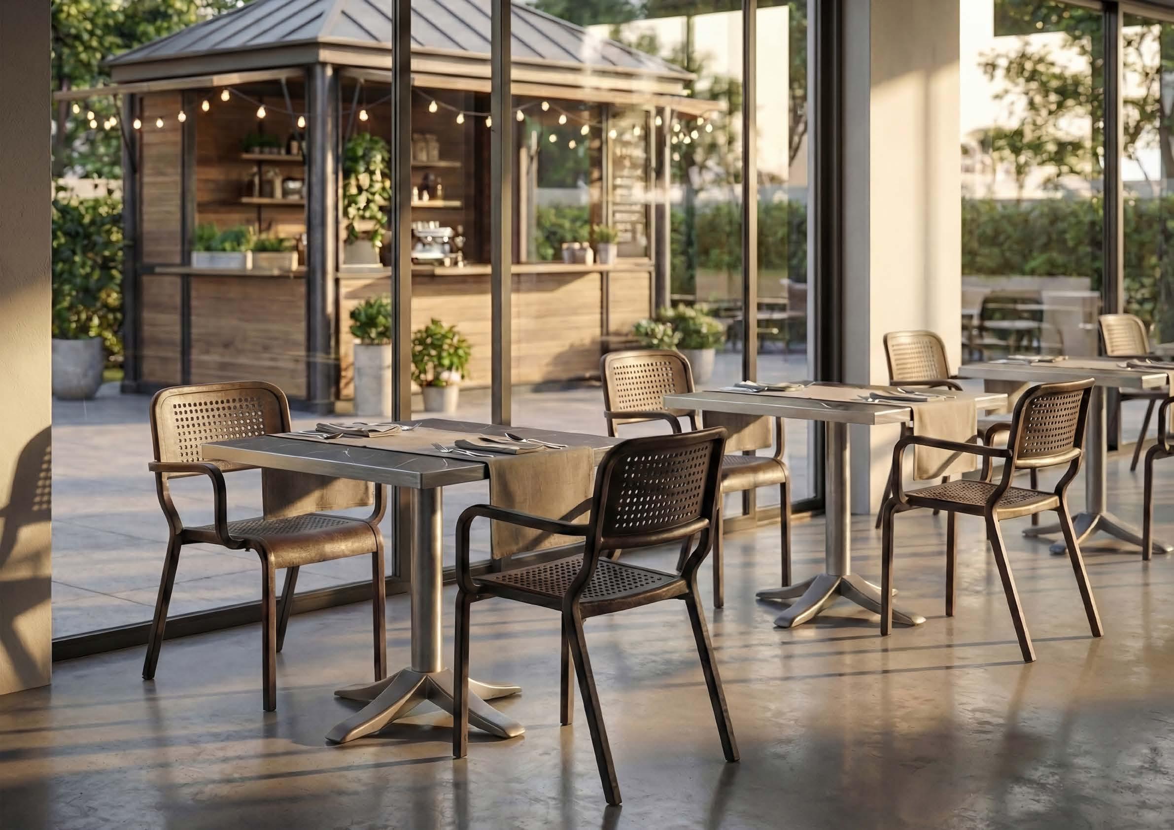 The Liberty line evokes the atmosphere of Parisian bistros with sinuous lines and stylized floral details. Finely crafted bases transform any horeca setting into a space of refined charm.
