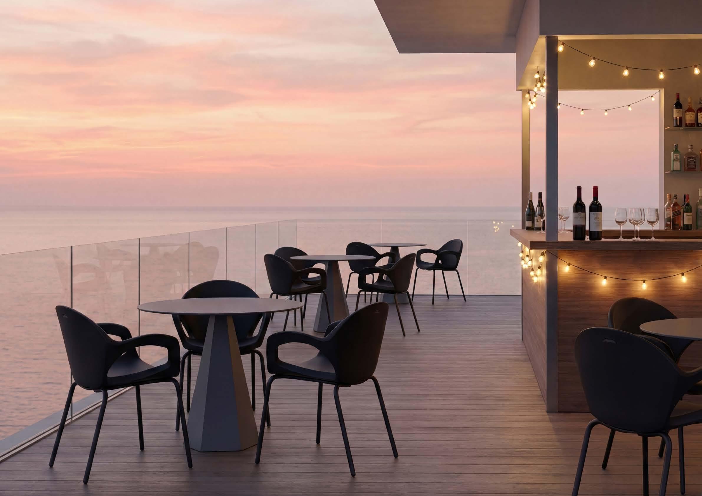 Pepper colpisce con linee graffianti e un profilo deciso. Impilabile e resistente, invita a sedersi con naturalezza, portando ritmo e personalità in ogni ambiente.