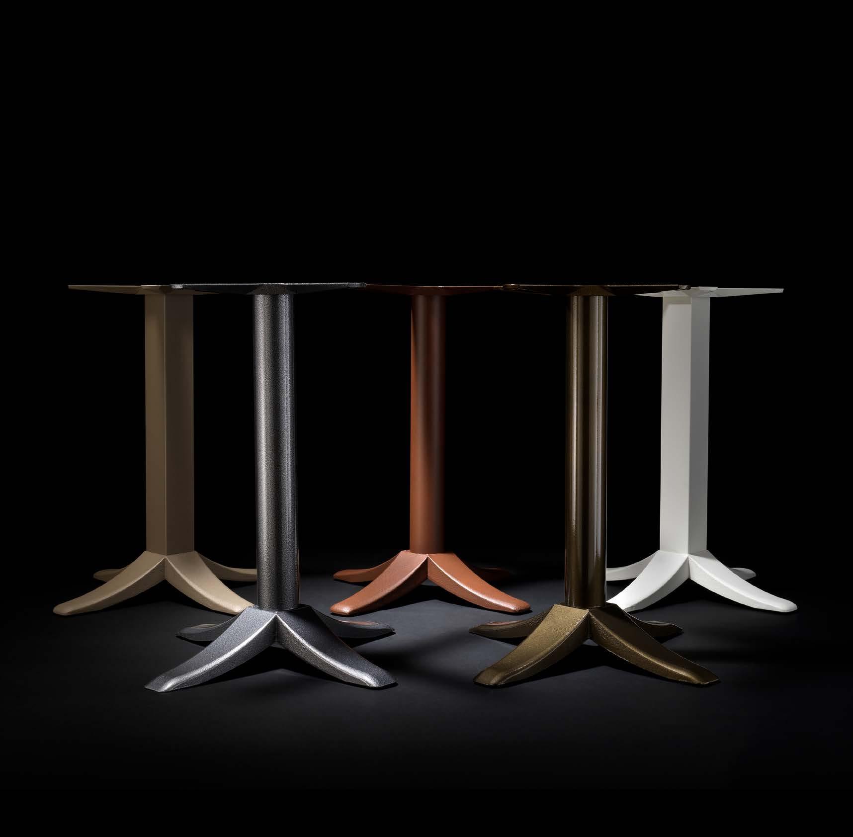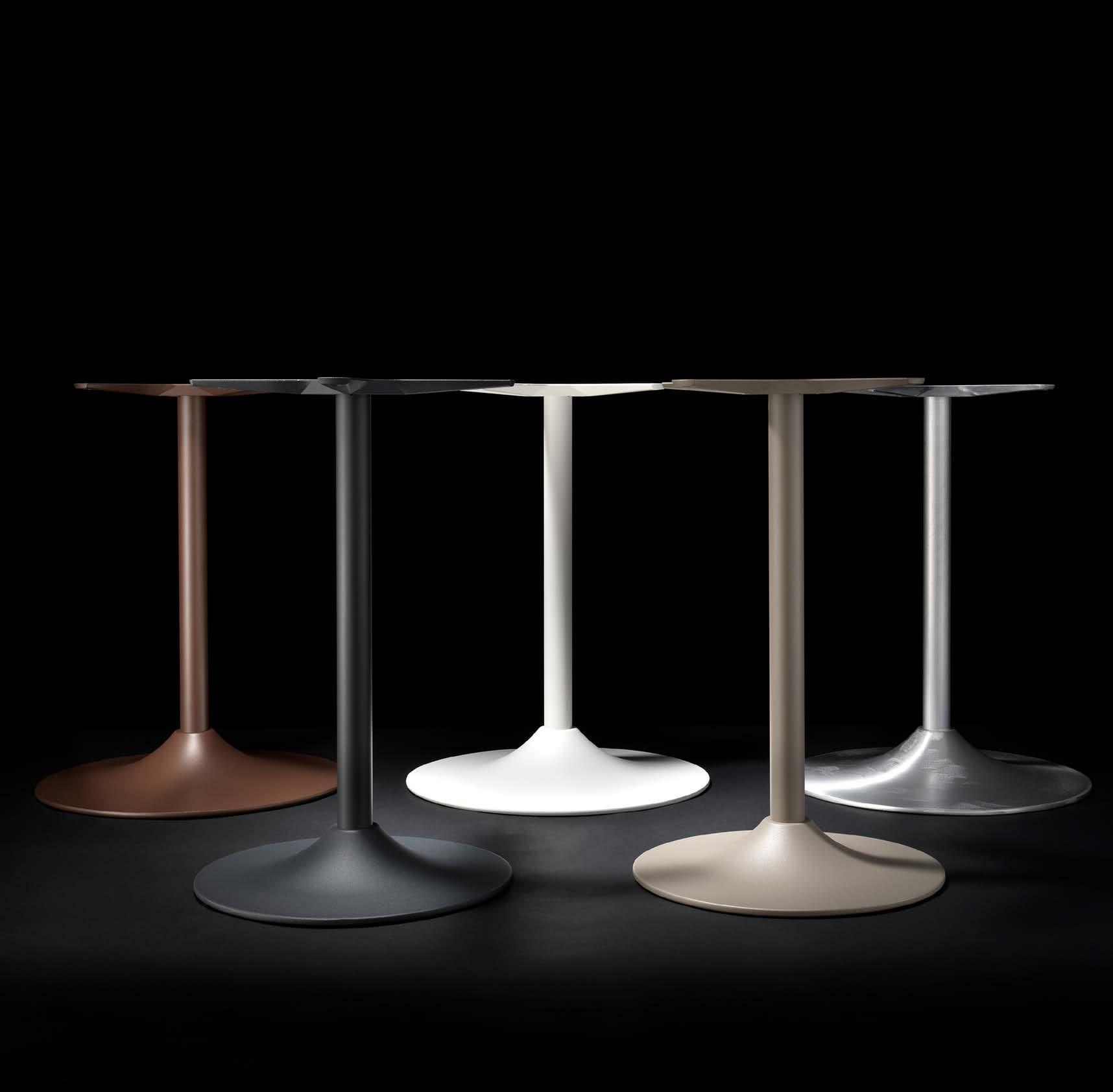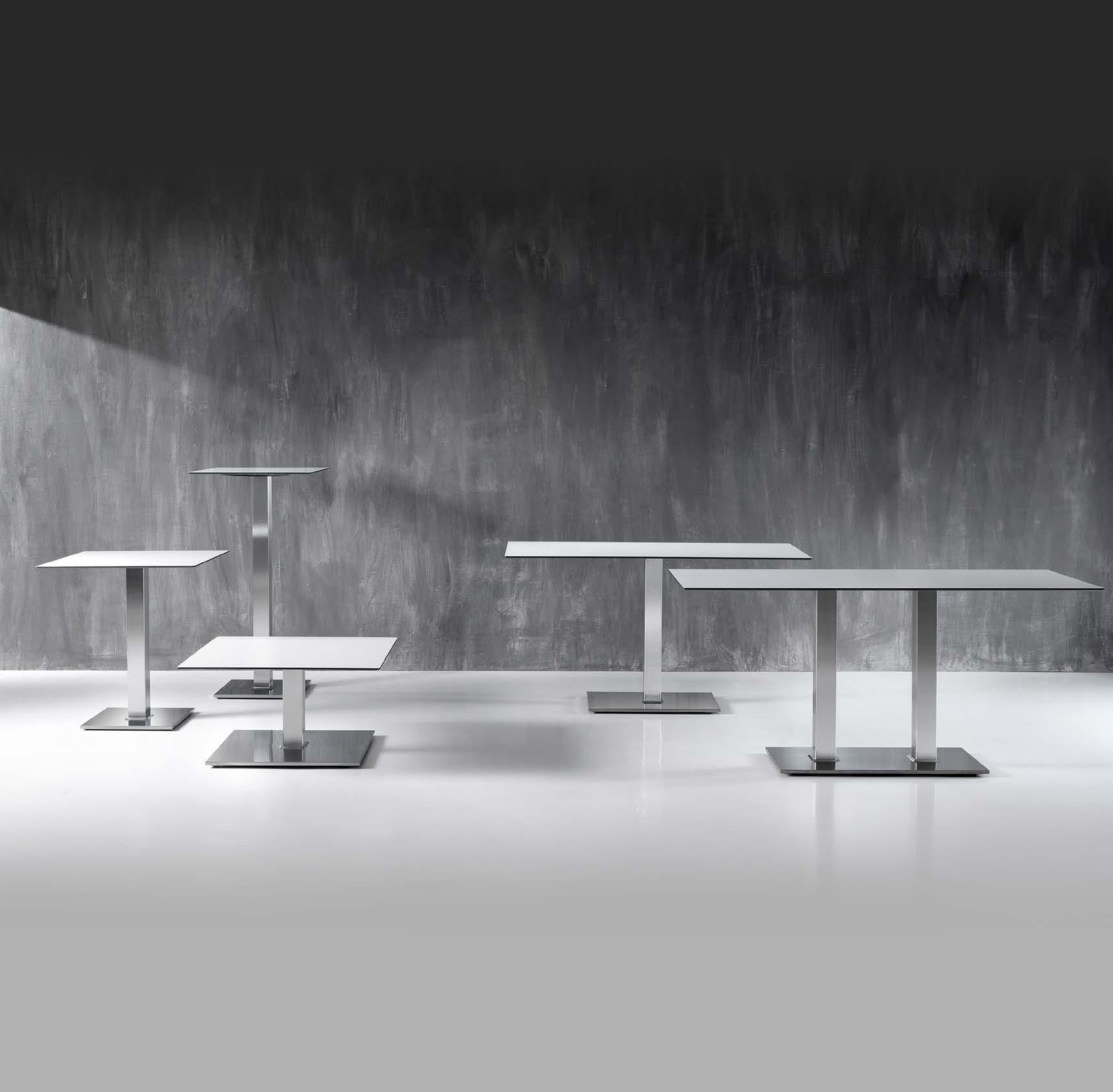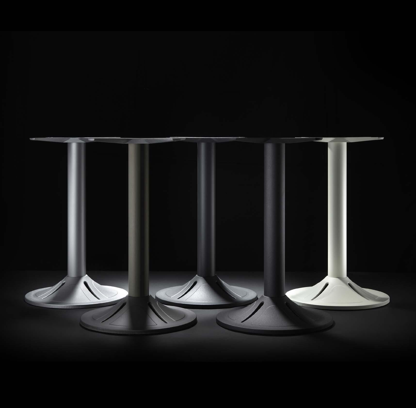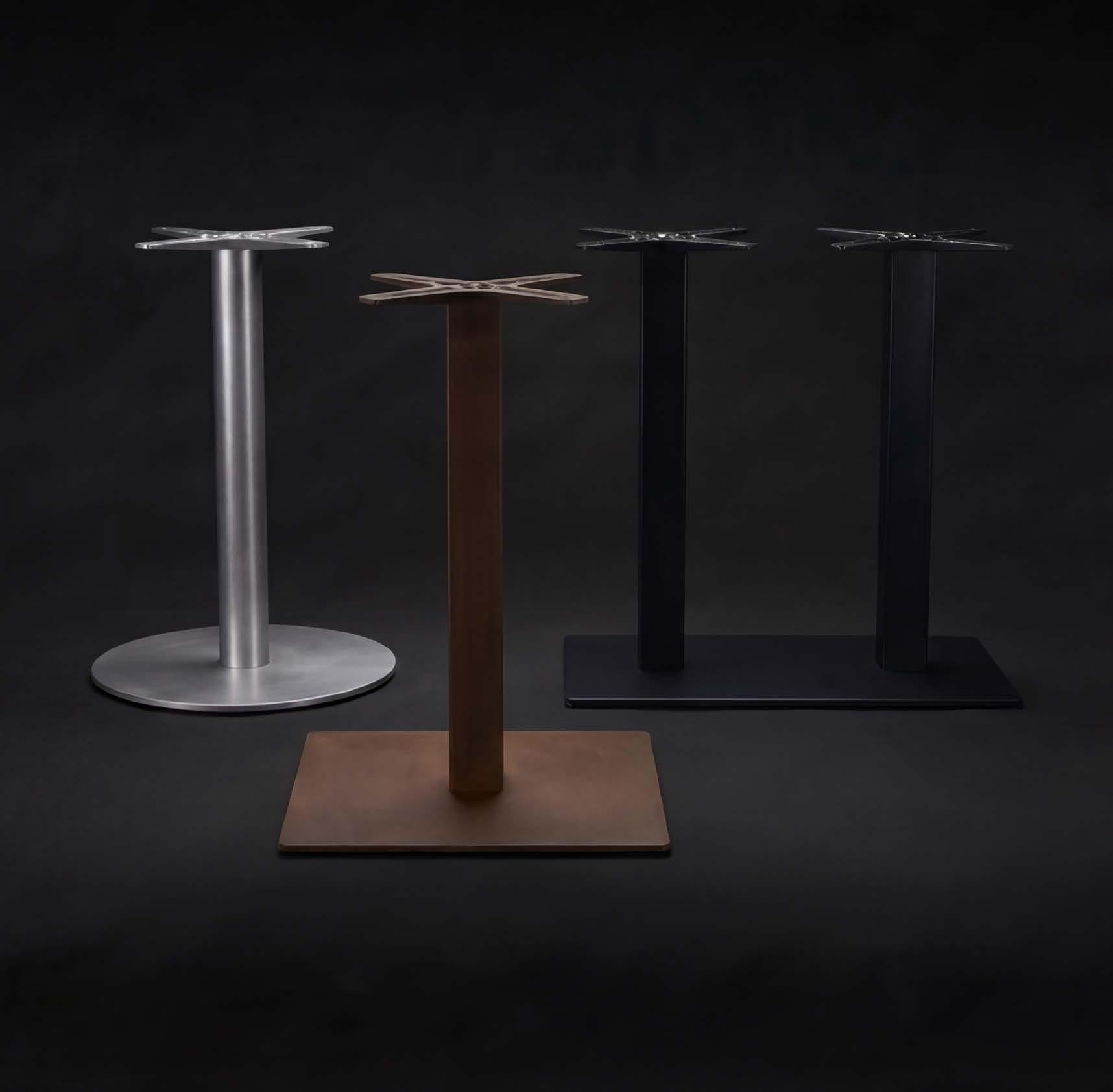 The Slim line interprets contemporary minimalism with slender columns and essential geometries. Light in appearance yet structurally solid, the bases enhance both tables and spaces.