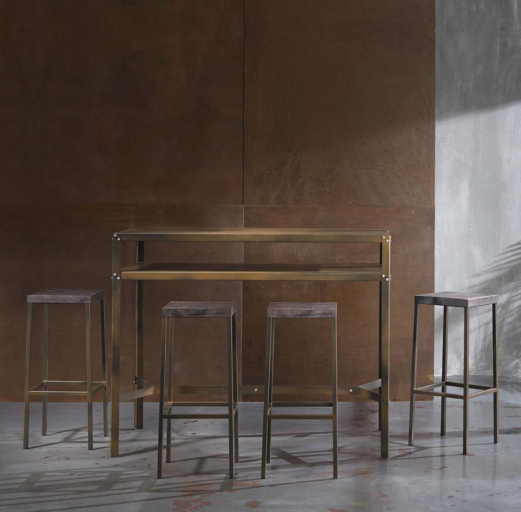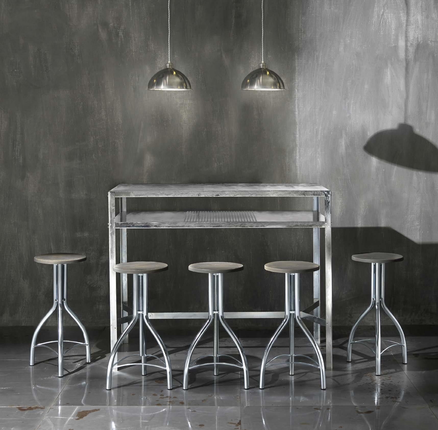 Il tavolo Hope Plus Alto esprime uno stile industriale contemporaneo con materiali puri e linee decise. Abbinato agli sgabelli Shabby, crea un dialogo tra forme e materiali.