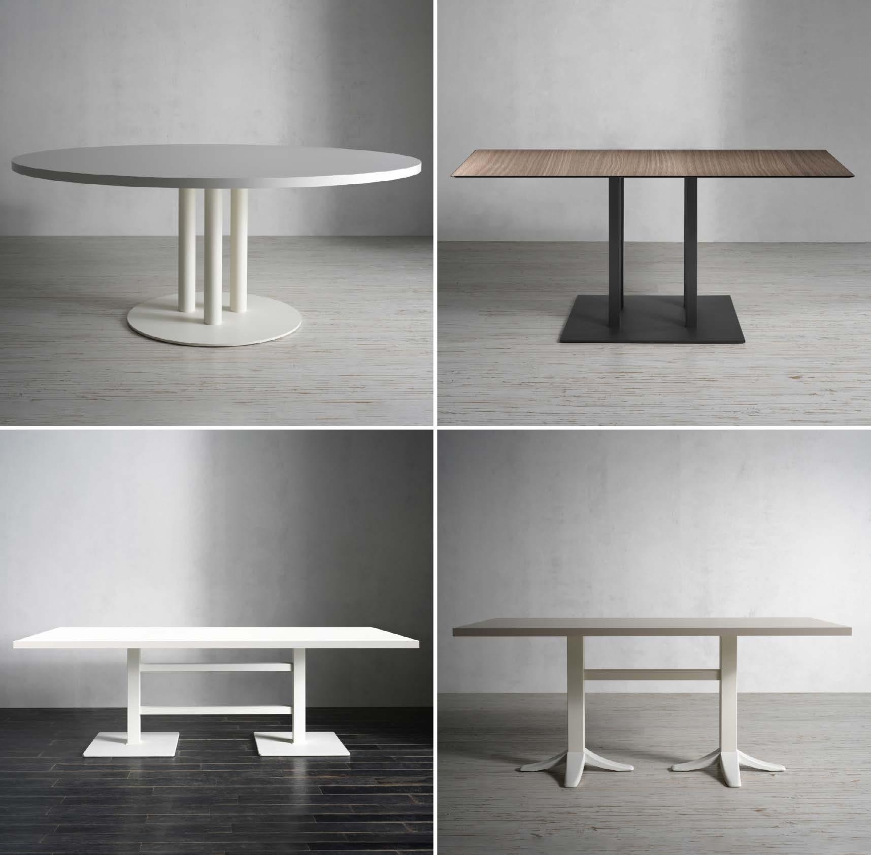 The 081F, 800XL, 110BQ Double, and PetraQ Double bases are designed to support large tabletops with stability and to enhance prominent spaces where the table becomes the centerpiece.