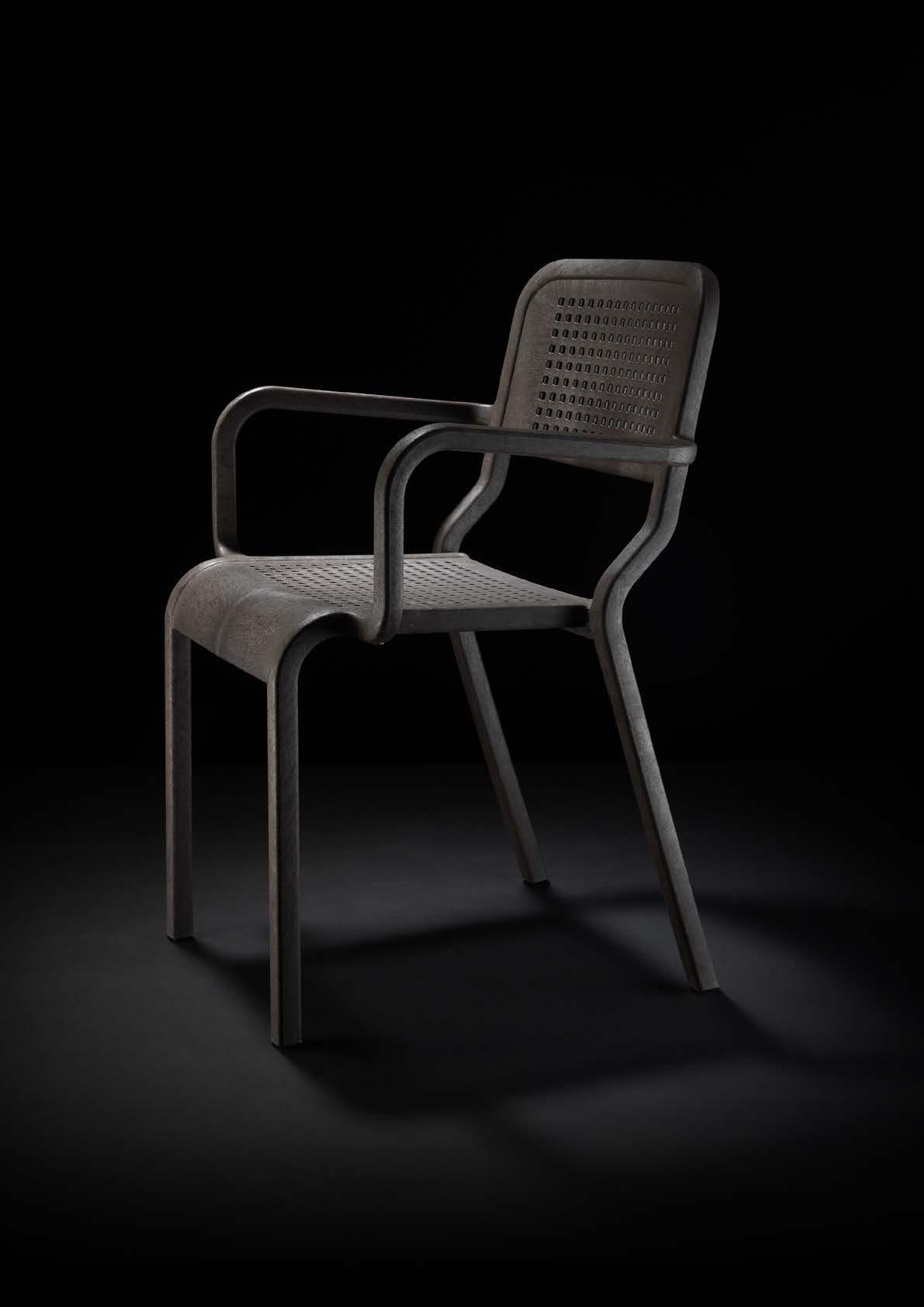 On the Road is a chair with a bold design that reflects sustainable values. Made from recycled materials, it combines ergonomics, contemporary aesthetics, and environmental responsibility.