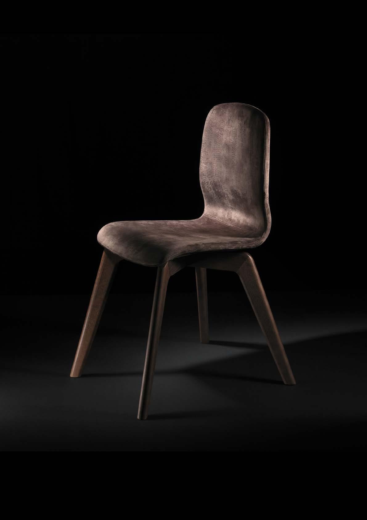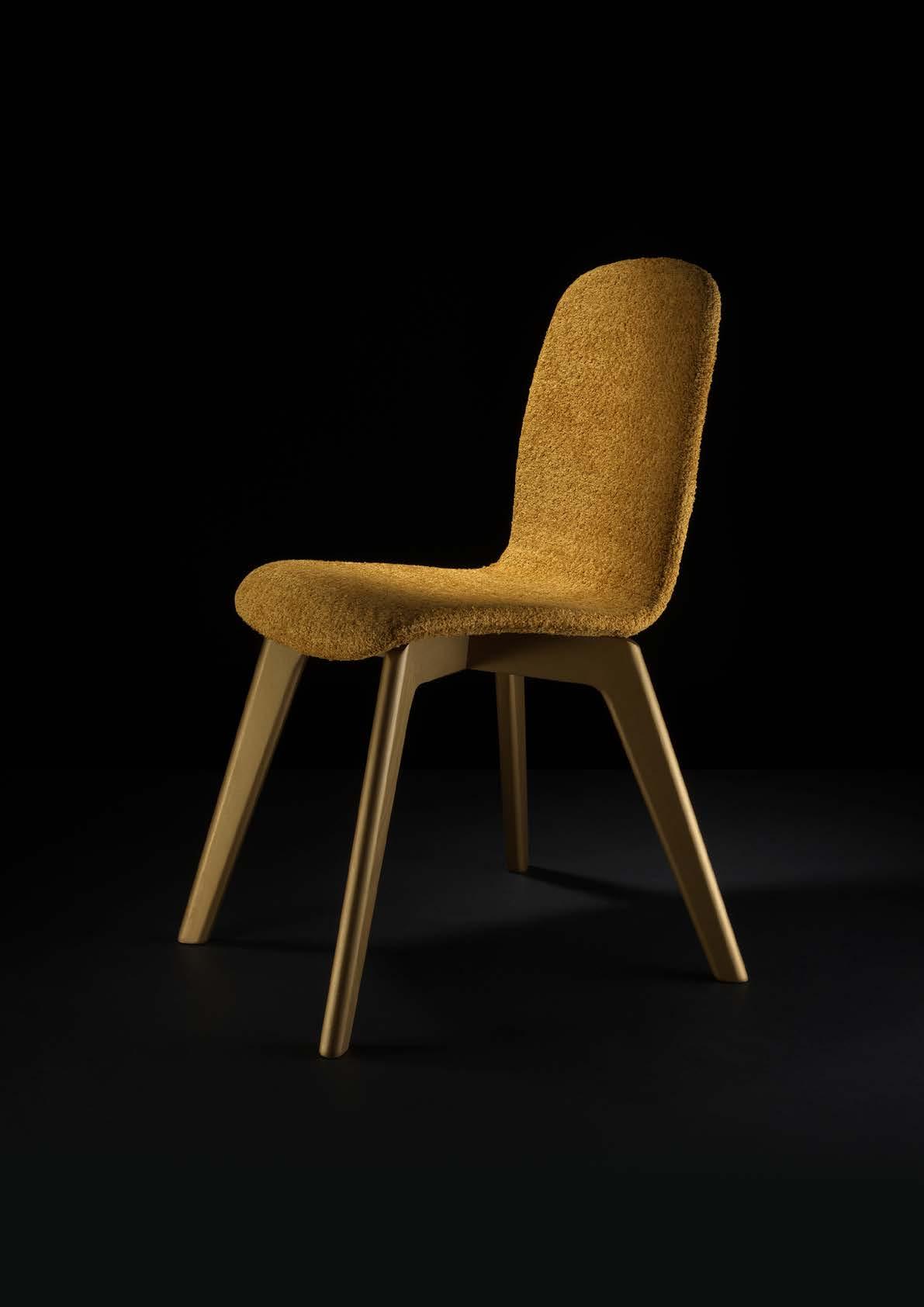 Glamour Wood Up avvolge con linee sinuose e morbidezza, regalando una seduta elegante e confortevole. Il legno massello del telaio e la scocca esaltano la sensazione di stile raffinato.