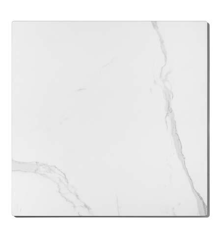 Il tavolo Prisma è composto da base in alluminio riciclabile e piano in gres effetto Marmo Statuario. Un complemento con una superficie raffinata e una base durevole.